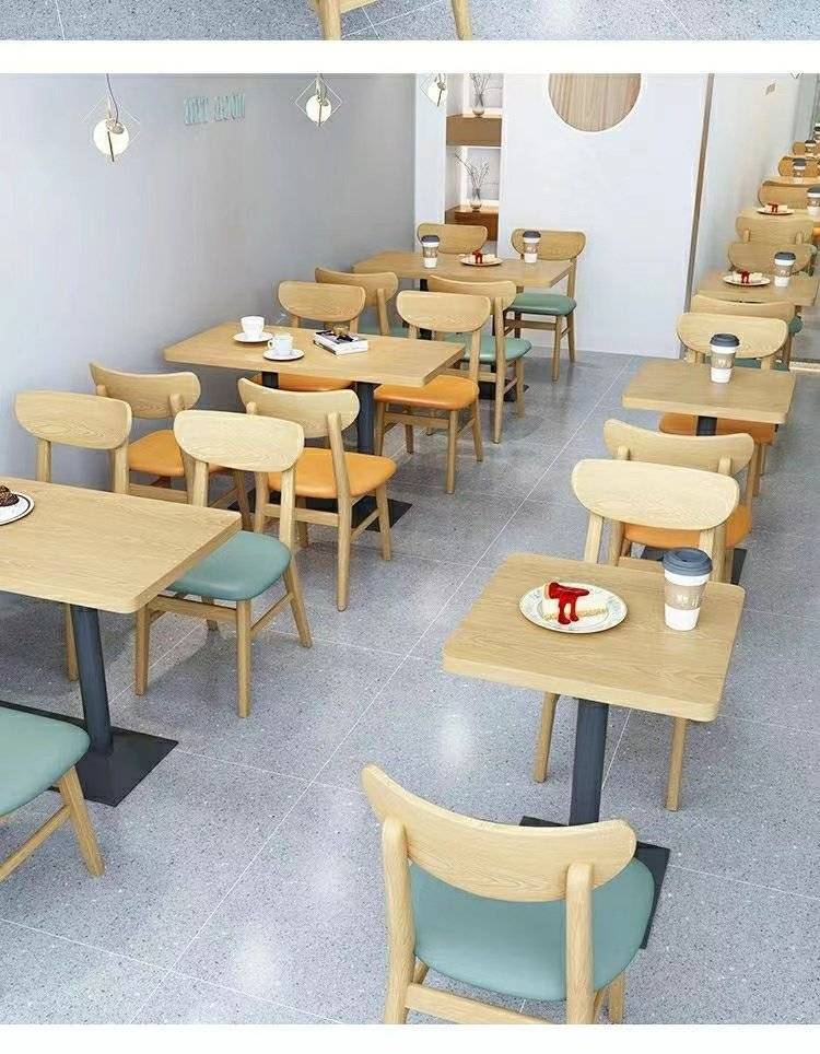 休闲饭馆餐桌橡胶木包大理石台面中式家具饭店餐桌椅可定制