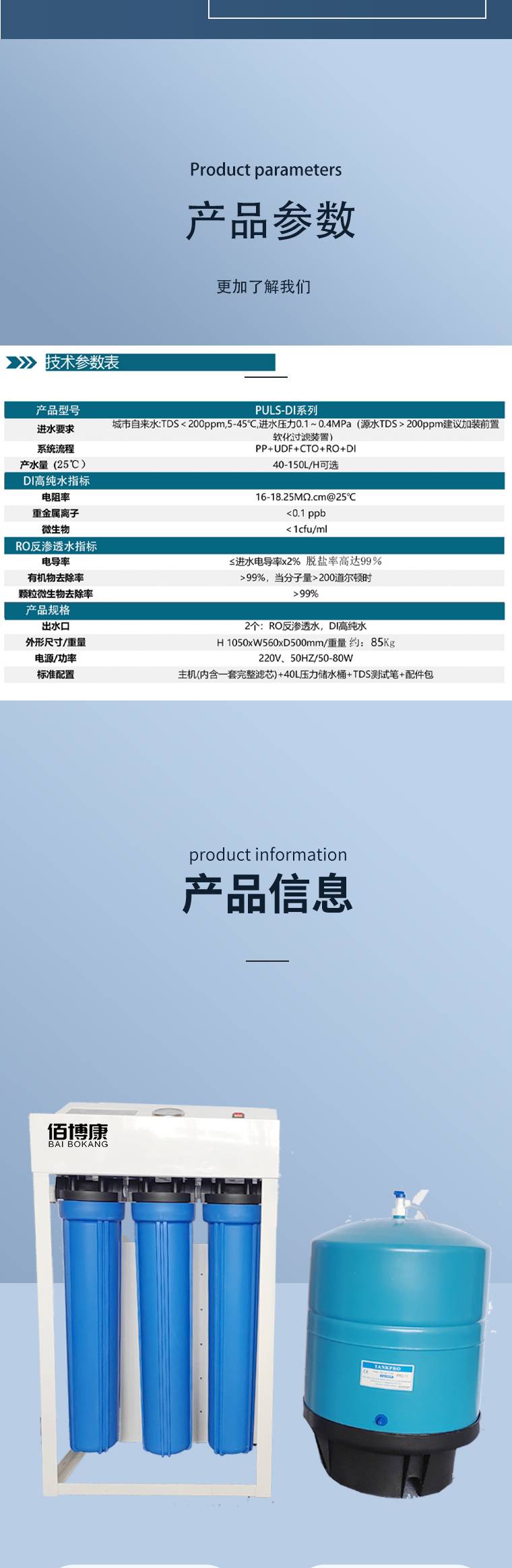 生化仪配套纯水机 多种规格水箱可配 国货好品牌 佰博康