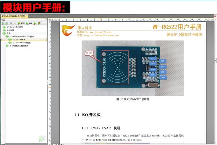 野火RC522 RFID射频IC卡感应模 送S50复旦卡、钥匙扣 配STM32源码