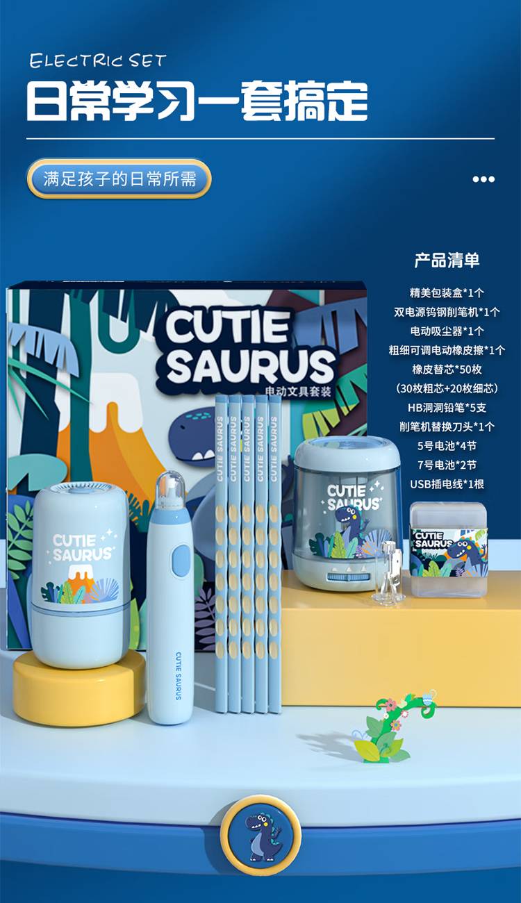 晨光文具小恐龙系列电动削笔器套装 一二年级学习用品礼盒