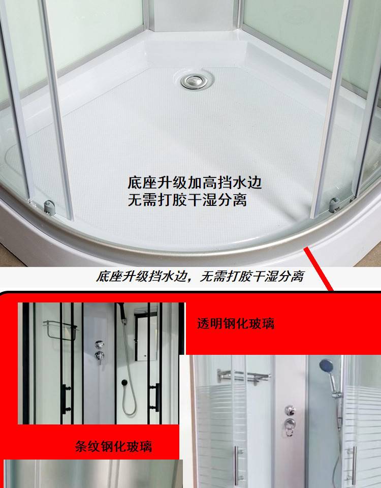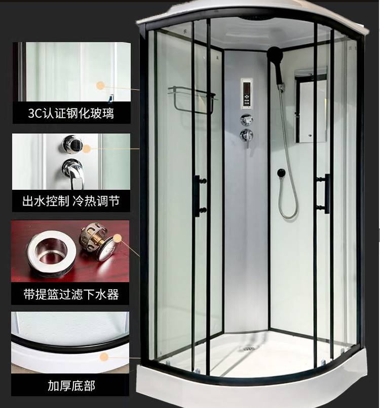 整体淋浴房弧扇形家用淋浴隔断一体式沐浴房洗澡弧形浴室暖风隔水