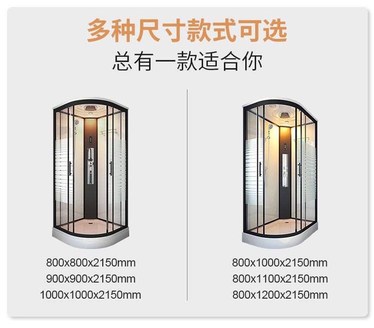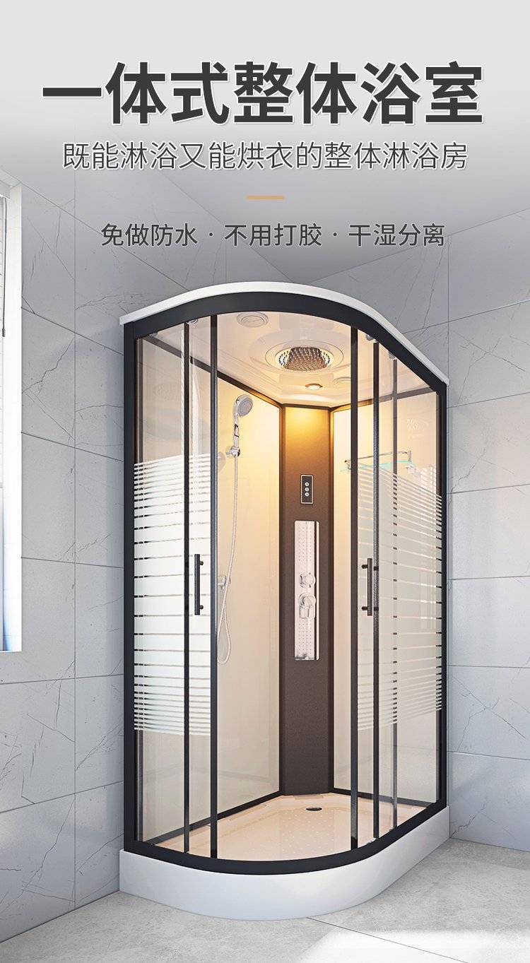 整体淋浴房一体式家用浴室农村玻璃隔断带底座弧形洗澡间沐浴房