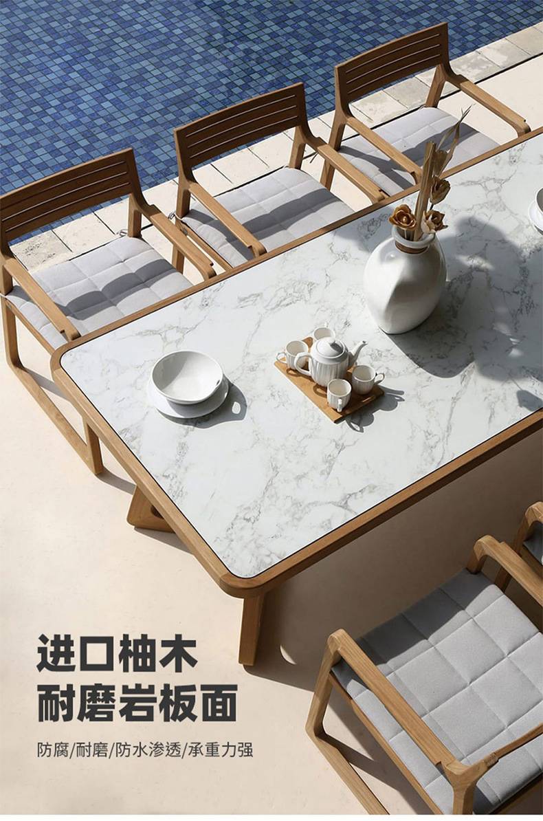 户外桌椅实木天台阳台庭院花园别墅岩板餐桌防水防腐柚木家具