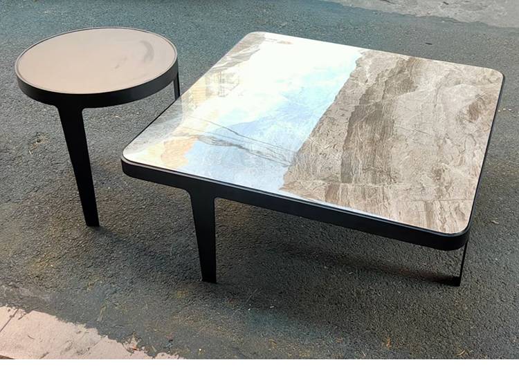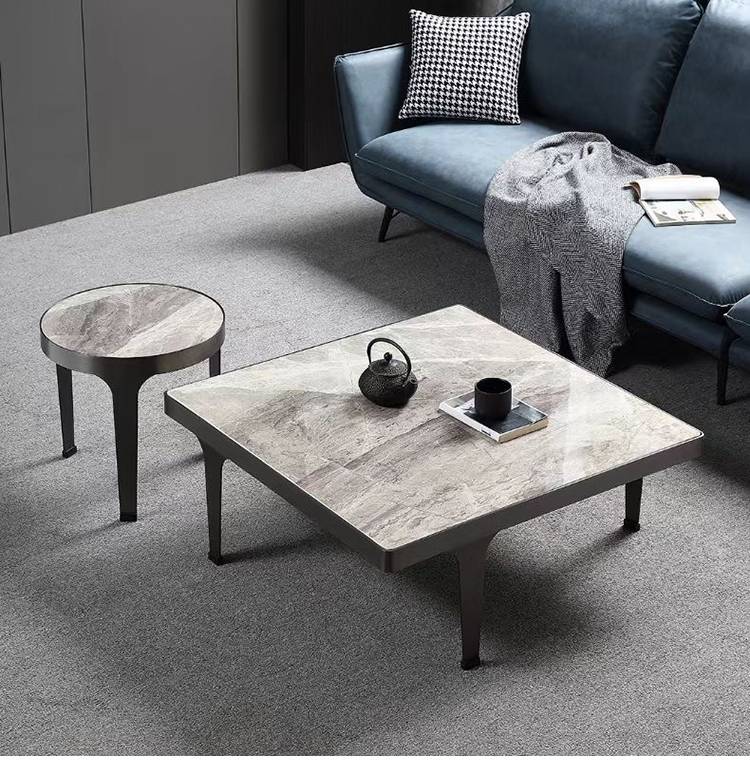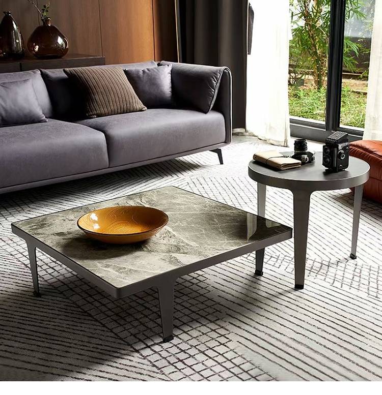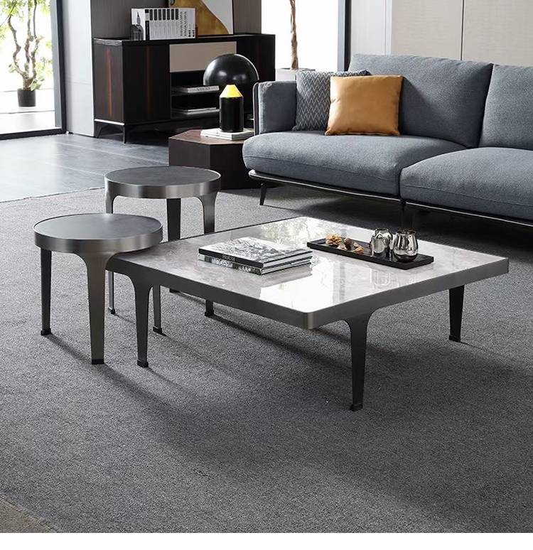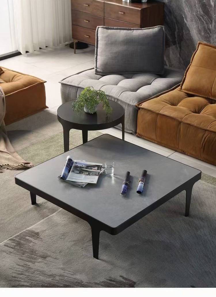 网红极简大平层别墅设计师客厅茶几意向岩板个性样板房定制家具