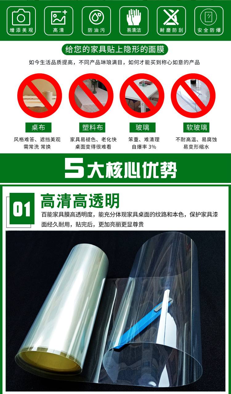 餐桌贴膜防烫岩板大理石桌面家具耐高温茶几石英石奢石透明保护膜