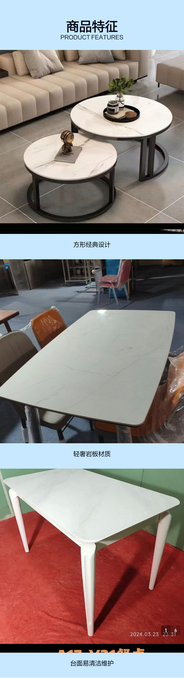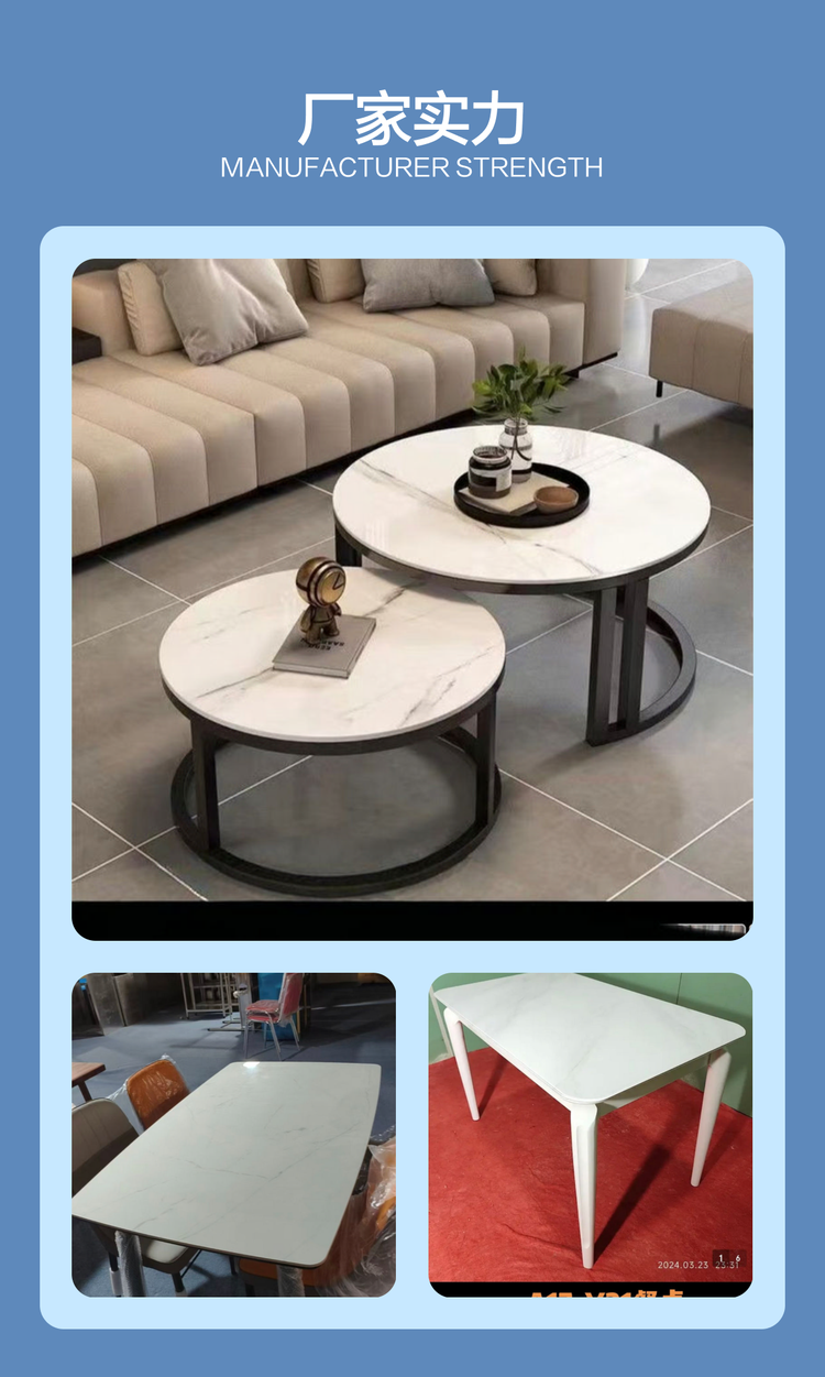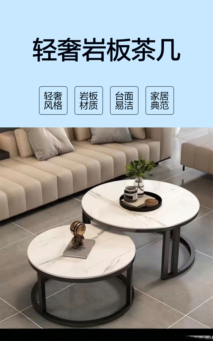 得美商贸 方形经典款 轻奢岩板茶几 台面易清洁 增添家居质感