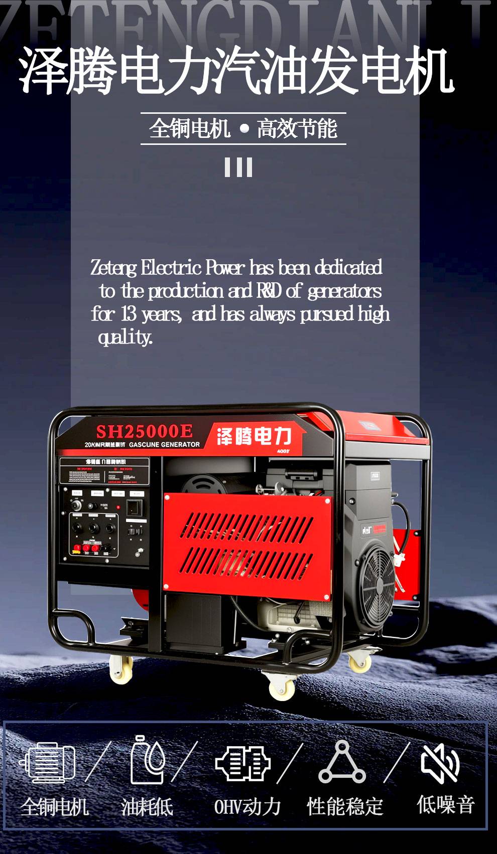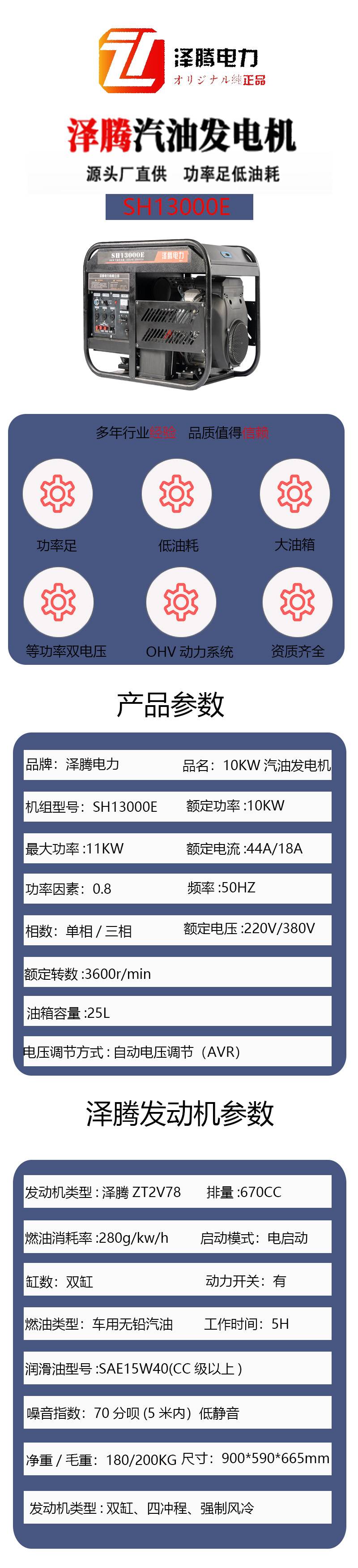SH13000E 10KW泽腾电力汽油发电机 双杠 智能调速 招投标 资质齐全 原厂
