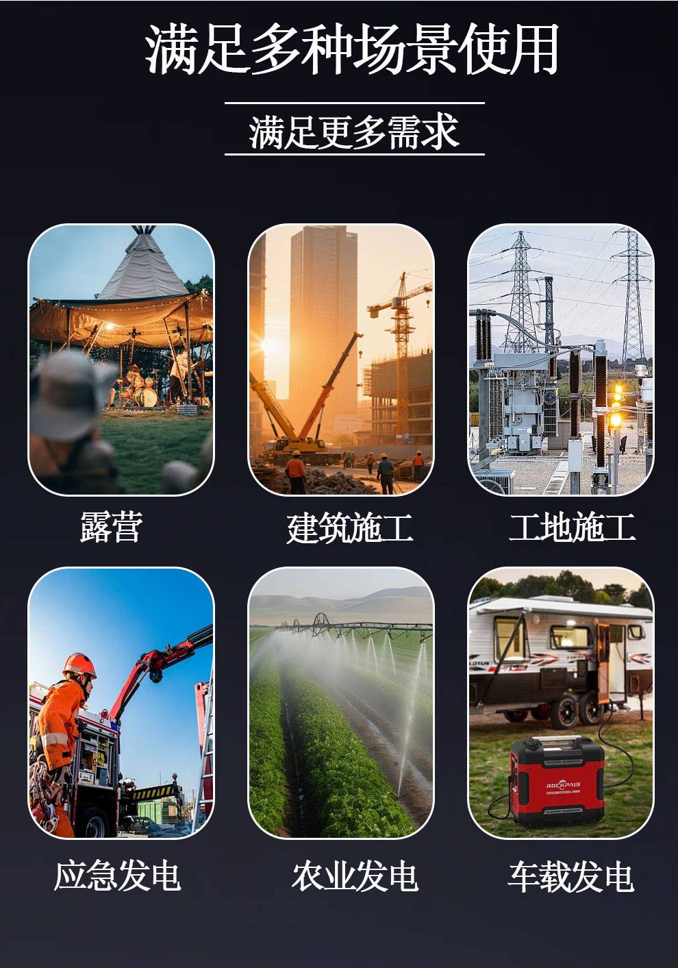 露营、房车旅行、家庭备用电源、施工现场、应急救援、户外作业