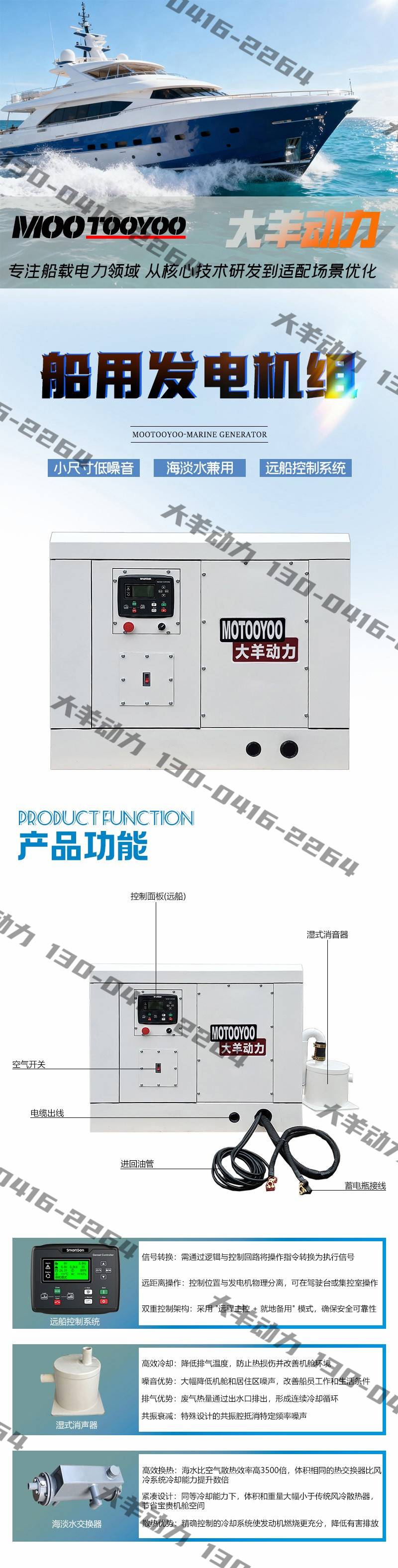 大羊动力12kw船用车载柴油发电机 电子调速单三相水冷型低噪音国四