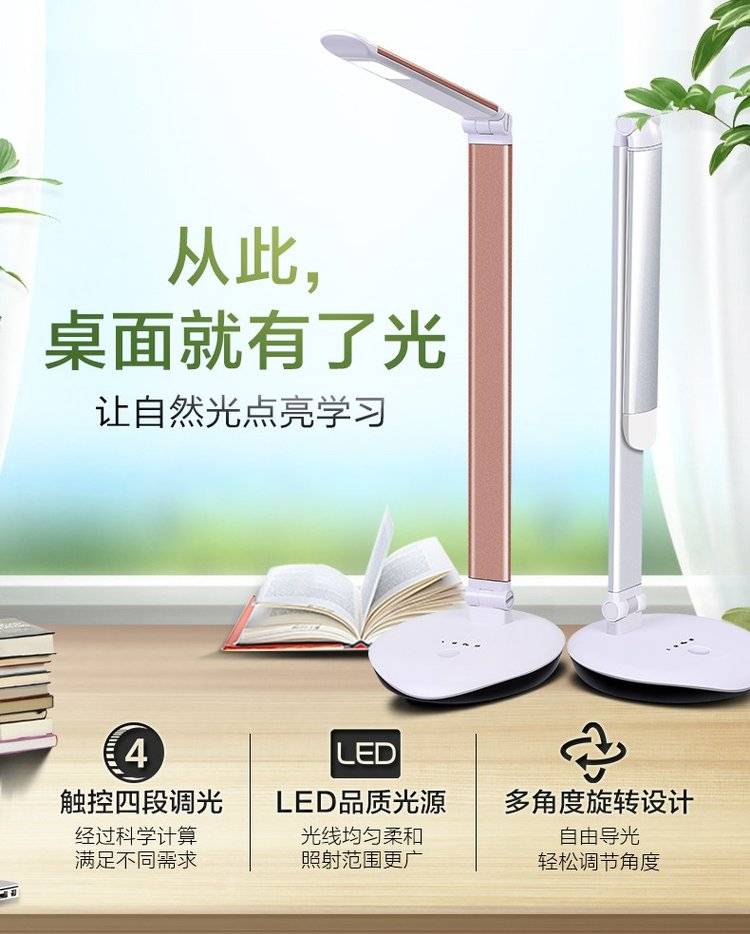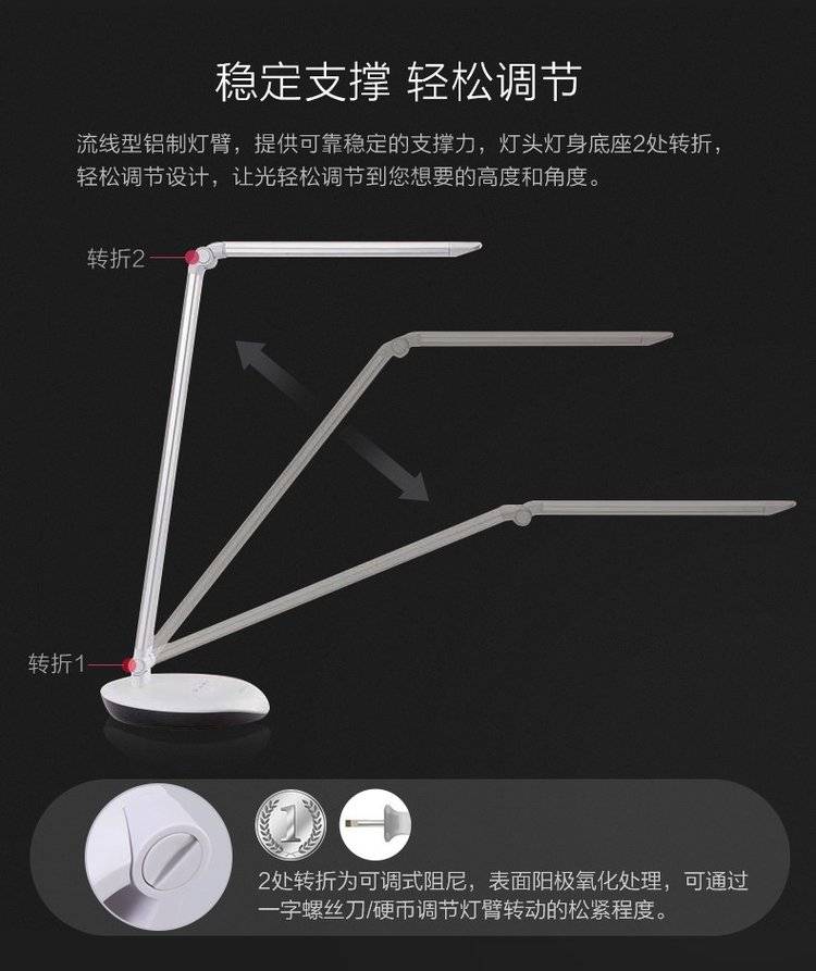 飞利浦5W暖光LED台灯 办公学习可调光铝材简约风