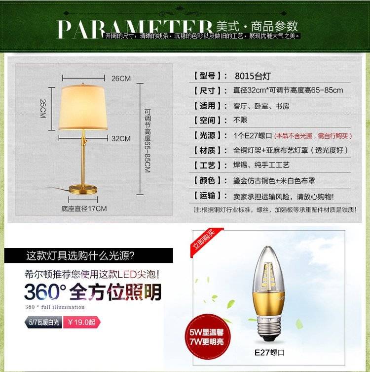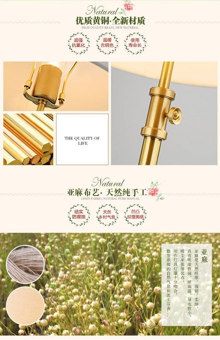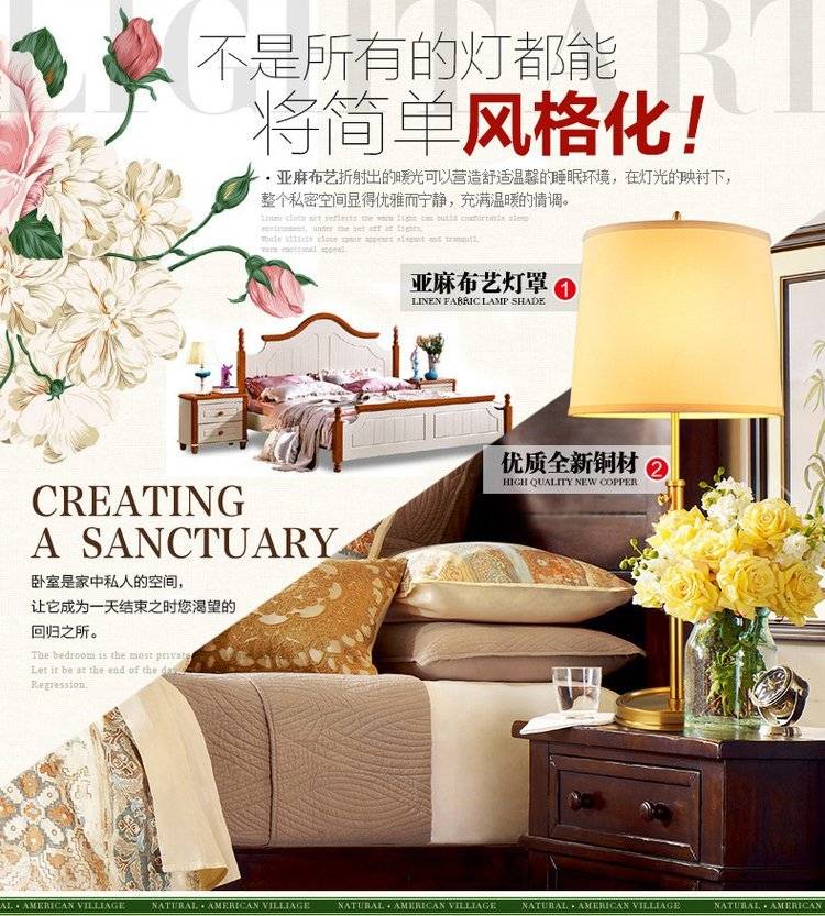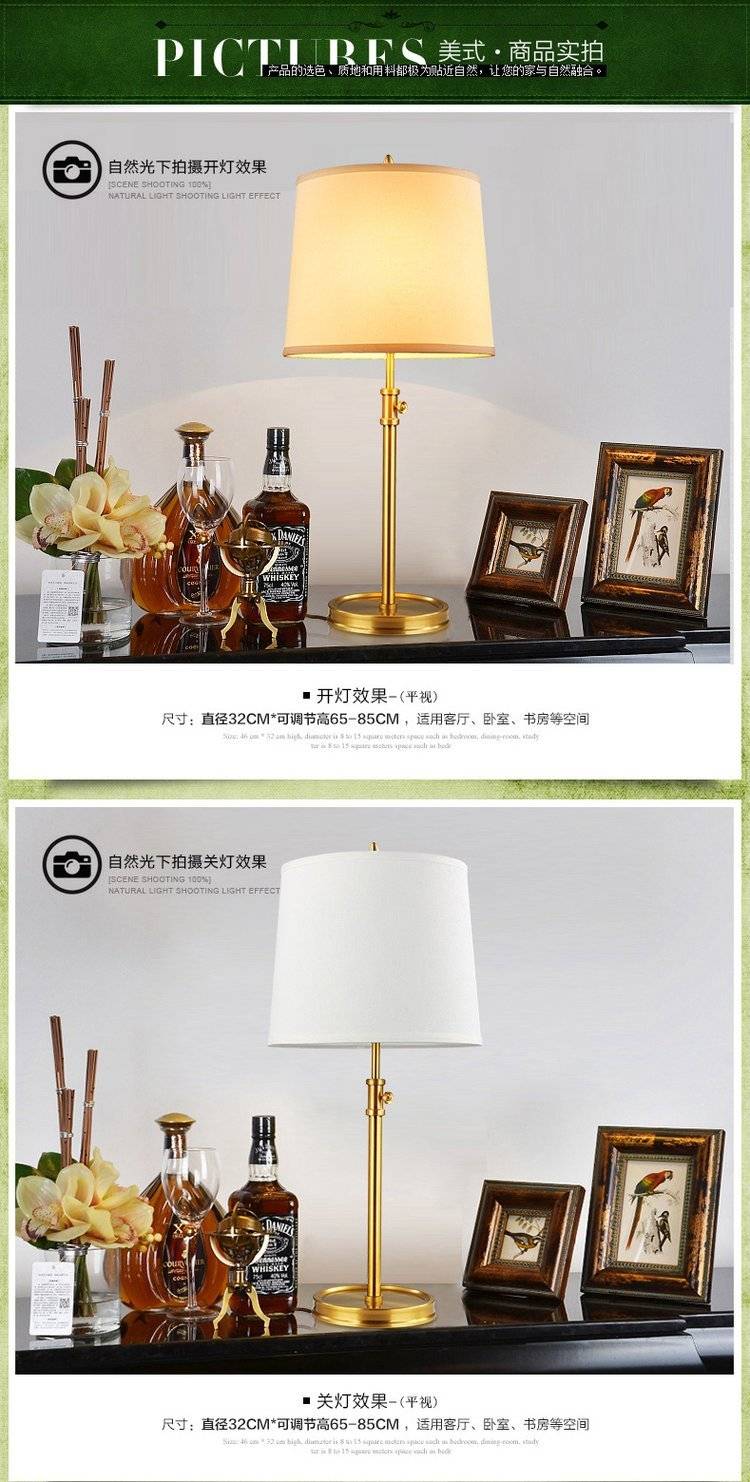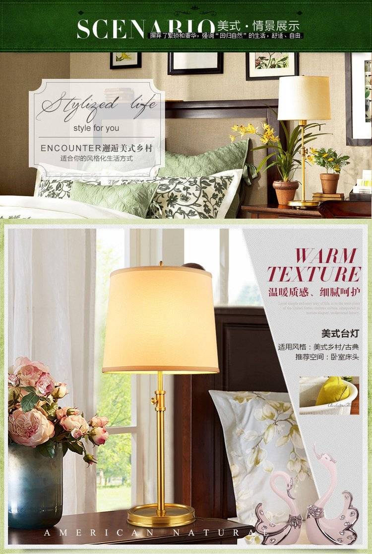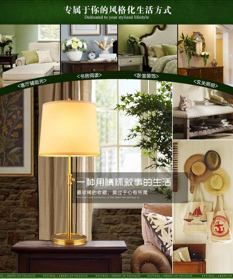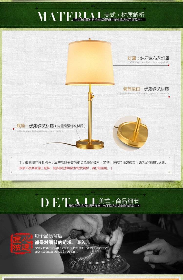 进丰布艺全铜台灯 酒店卧室床头装饰 客厅书房纯黄铜台 灯