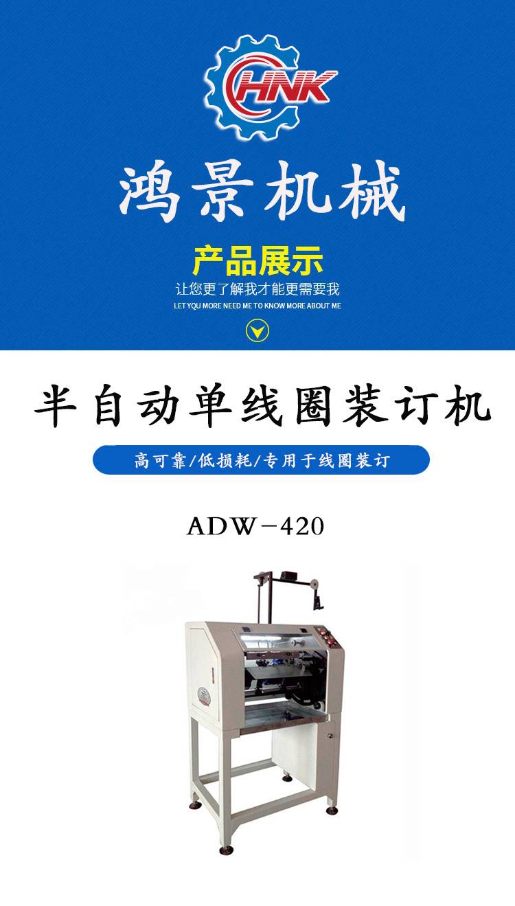 鸿景ADW-420半自动单线圈装订机 高效印后加工 笔记本活页本蛇仔圈