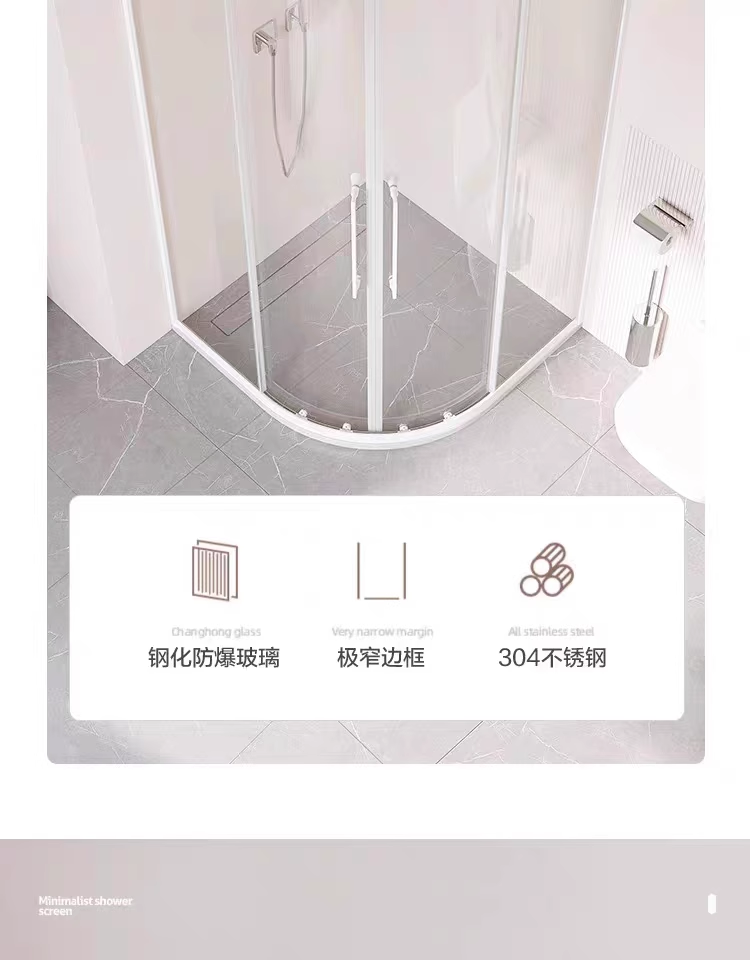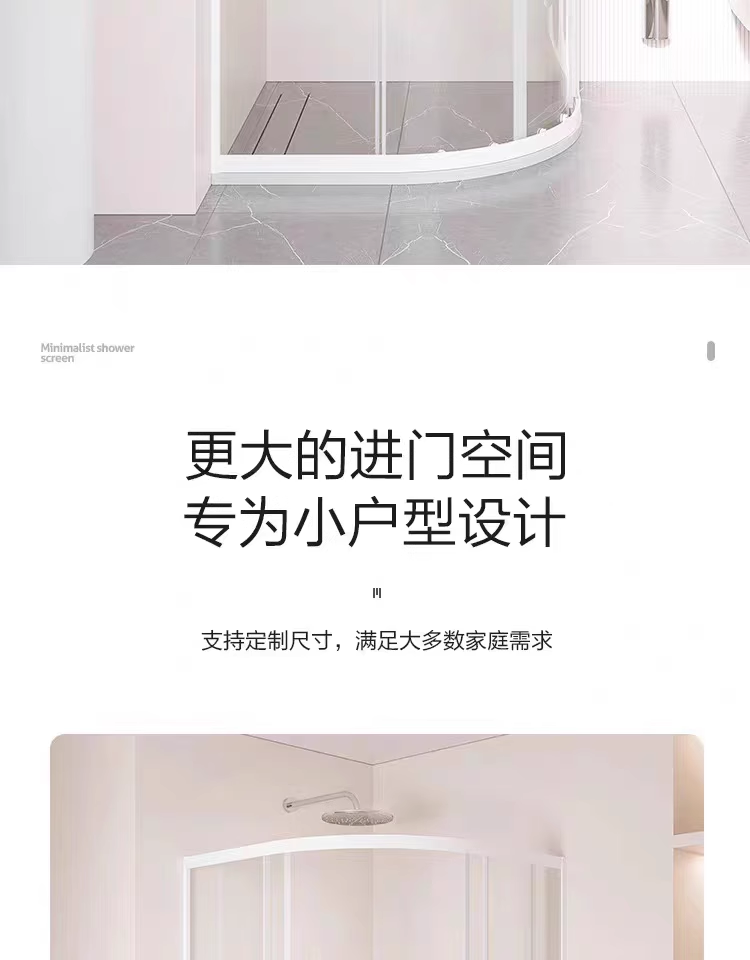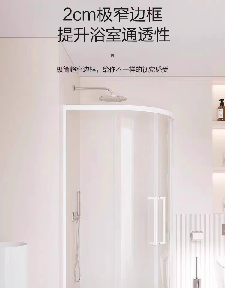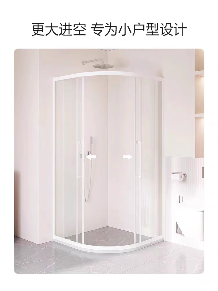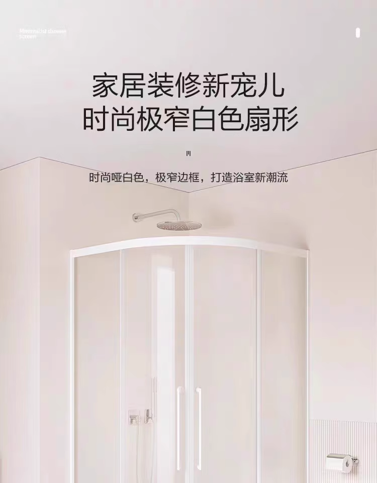 极窄白色弧扇形淋浴房浴室隔断卫生间干湿分离浴屏家用简易沐浴房