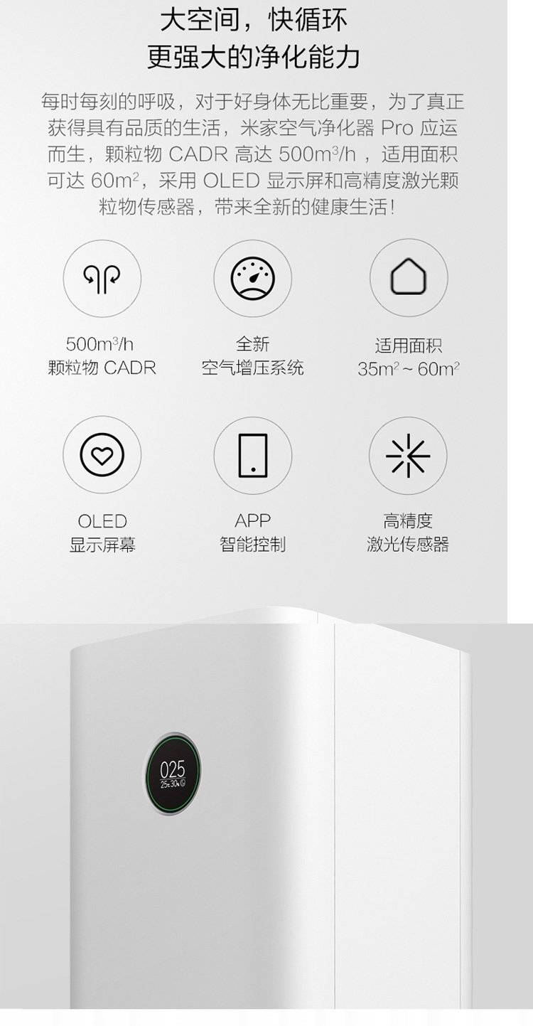 定制企业礼品米家空气净化器Pro 智能氧吧 室内360°循环净化