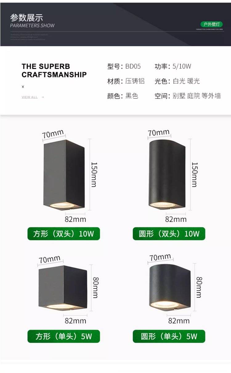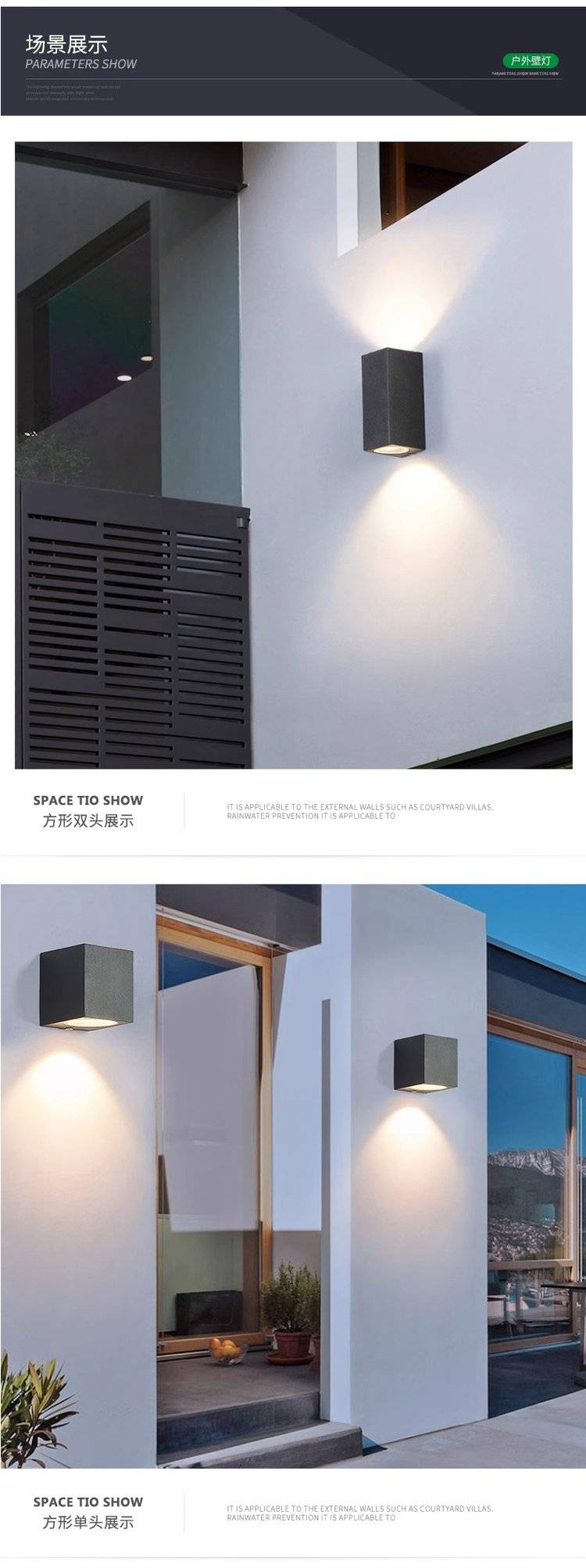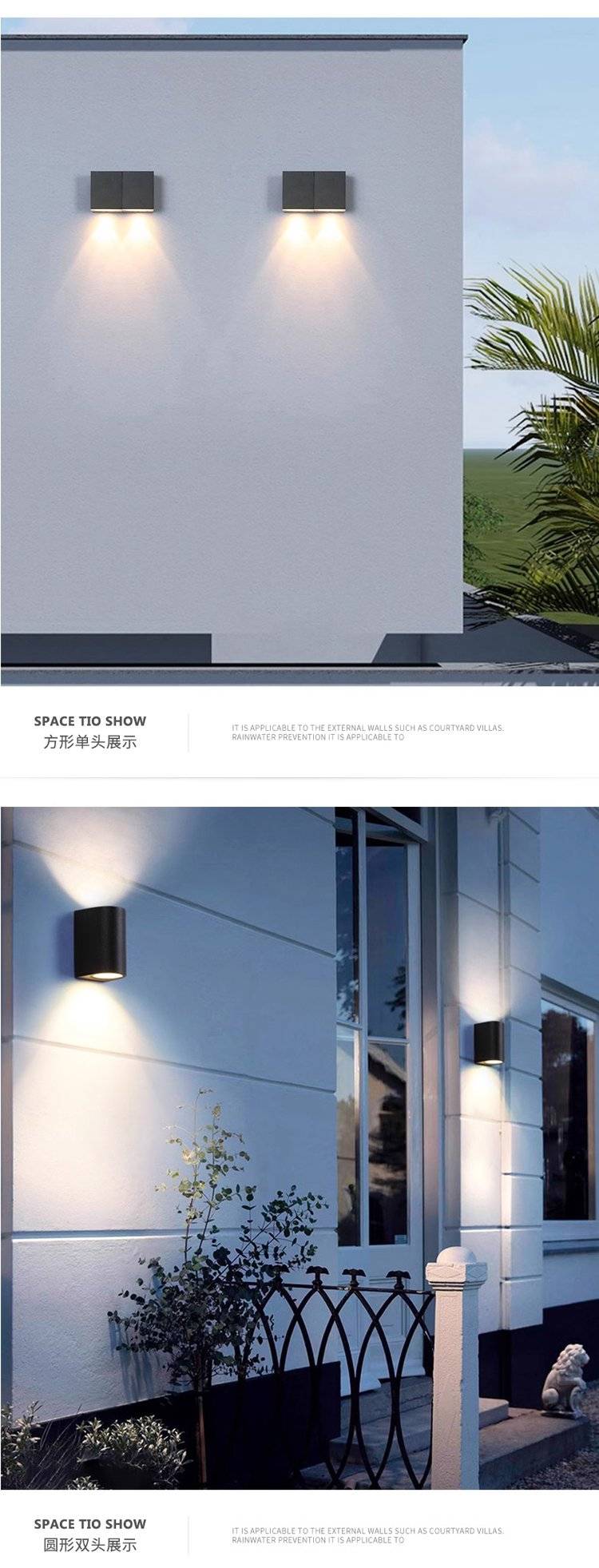 户外防水壁灯led别墅门头灯阳台过道双头洗墙灯花园庭院外墙灯