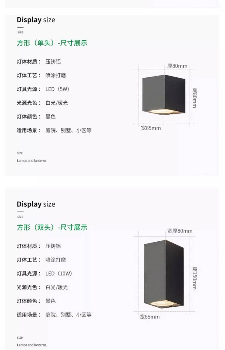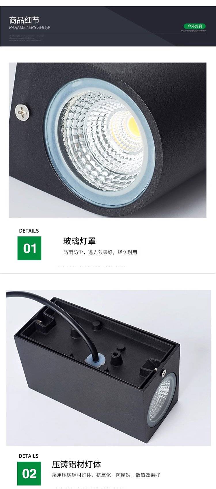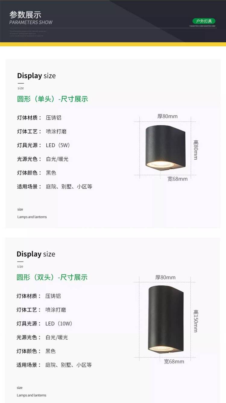 户外防水壁灯led别墅门头灯阳台过道双头洗墙灯花园庭院外墙灯