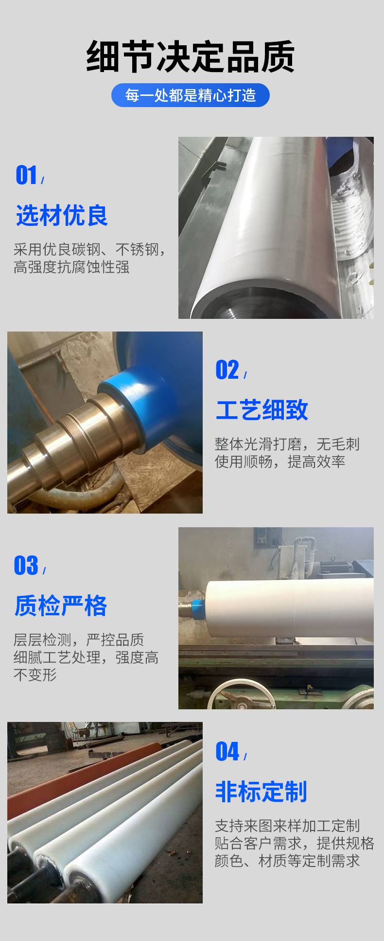 碳钢、不锈钢等 材质铁芯,丁晴胶包覆辊面