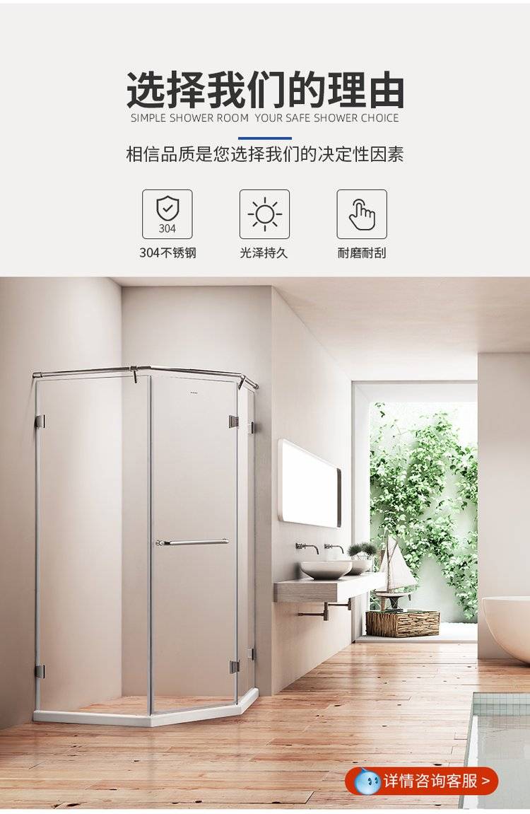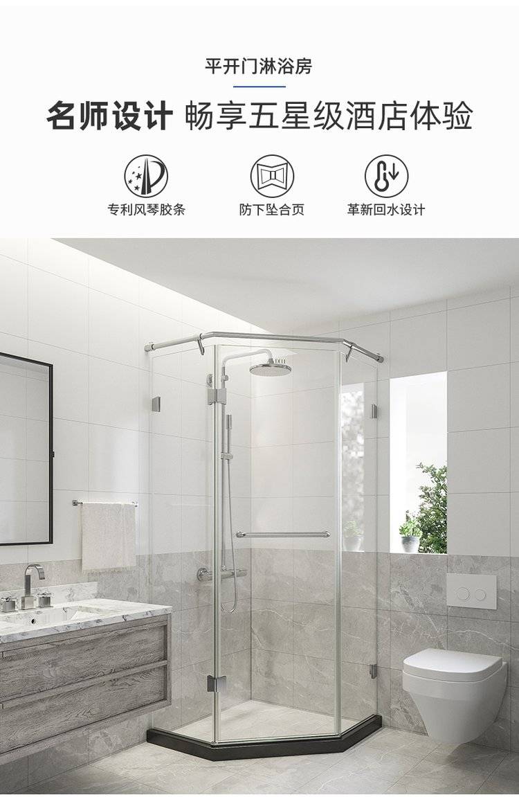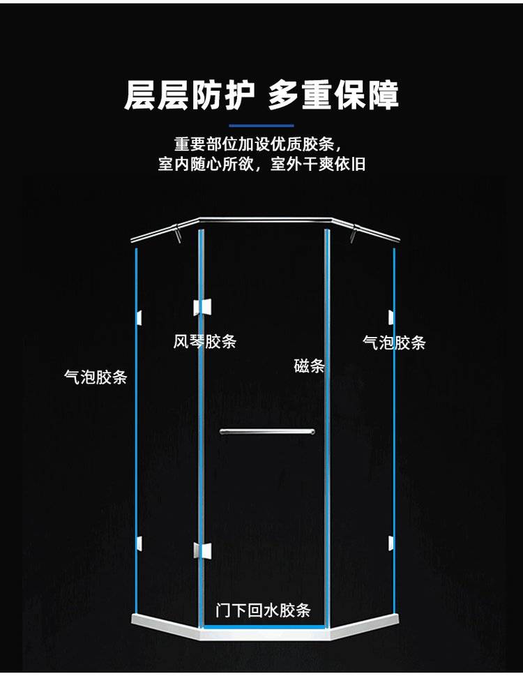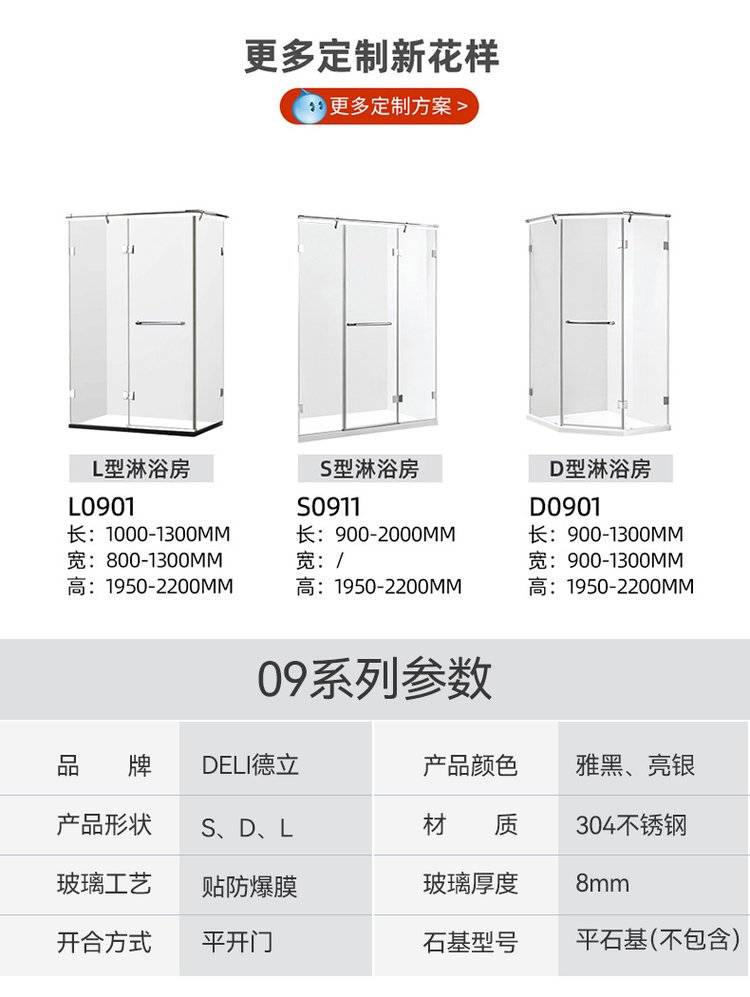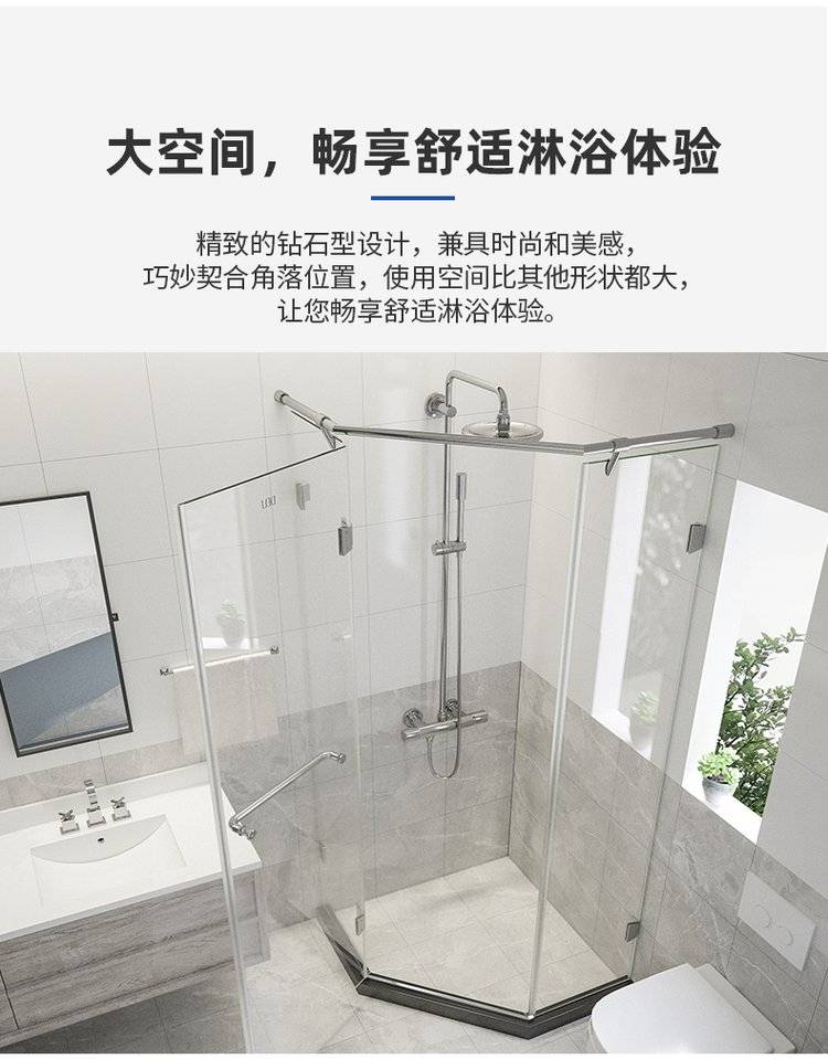 德立淋浴房定制干湿分离隔断浴室卫生间玻璃整体钻石型淋浴房D09