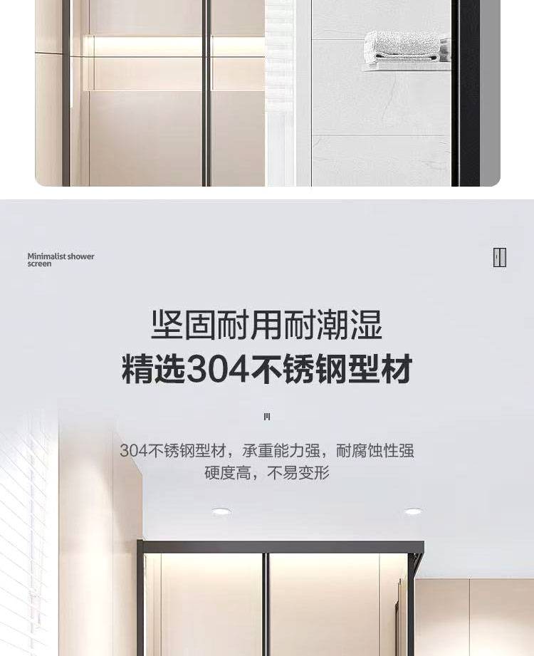 钻石型浴室家用洗澡定制卫生间干湿分离淋浴房简易玻璃一字形