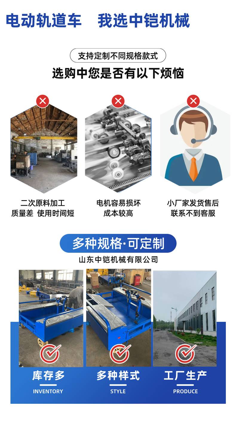 中铠 小型电动轨道车 大功率遥控四轮轨道运输车