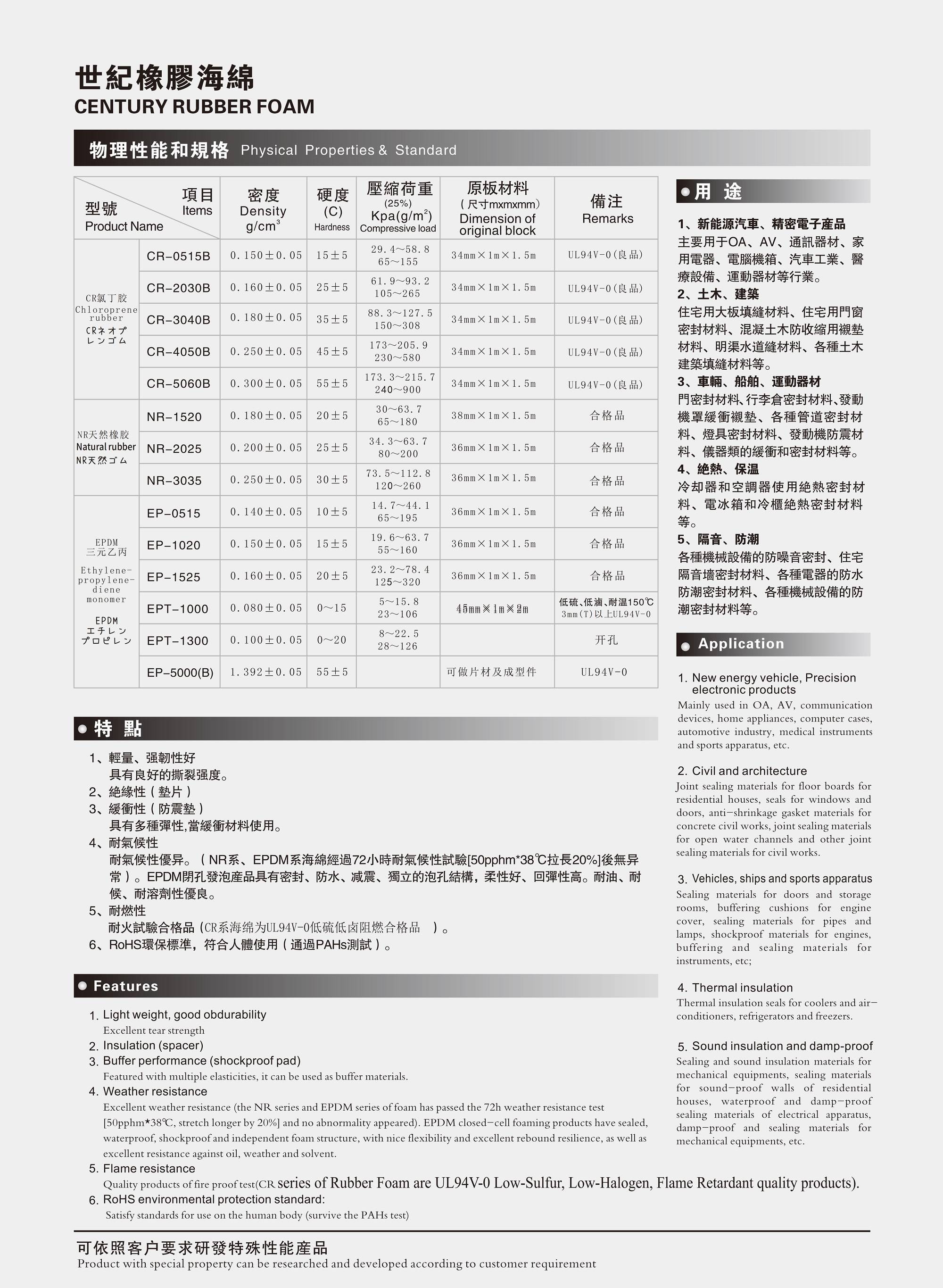 NR-2025 NR天然橡胶海绵 UL94-V0认证 厂家供应