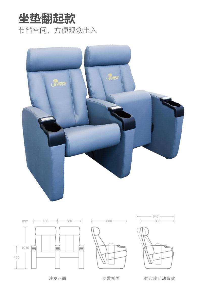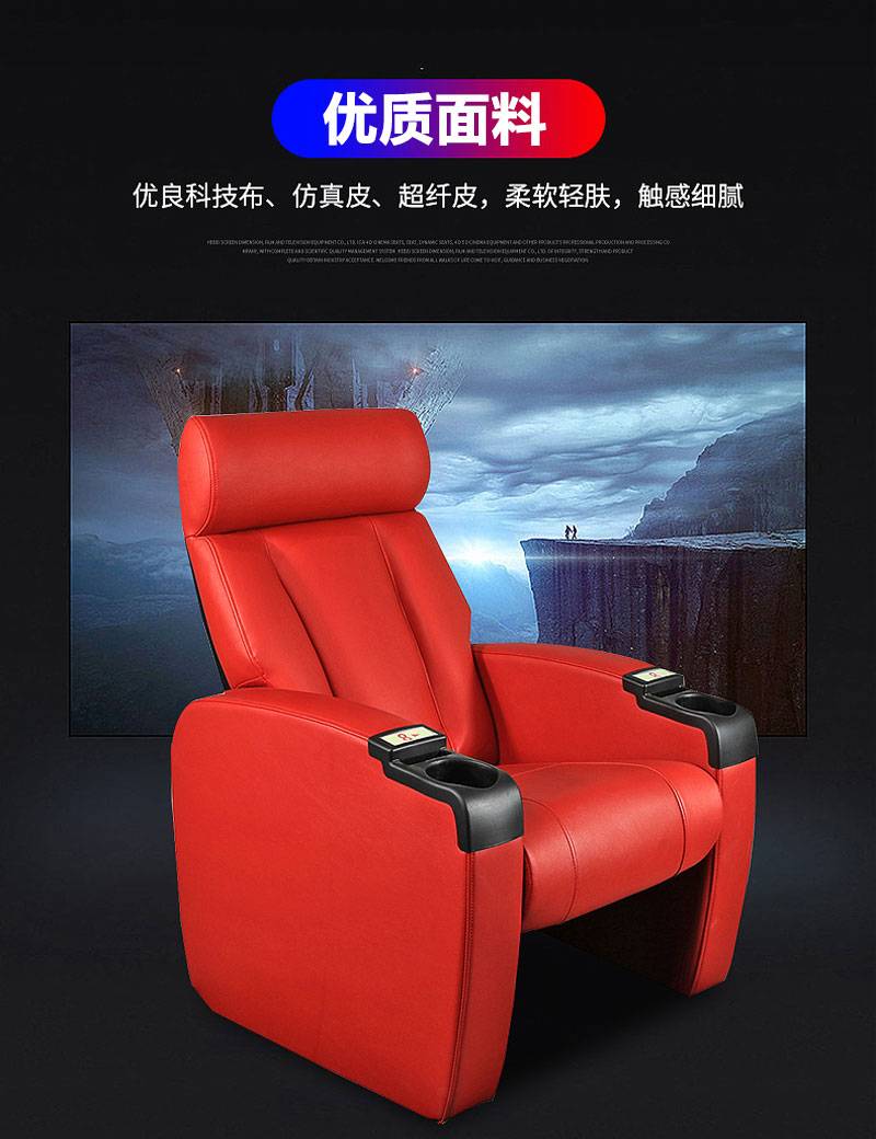 剧院沙发 舒适座椅 久坐不累 皮革材质 翻转坐垫 整洁易清理