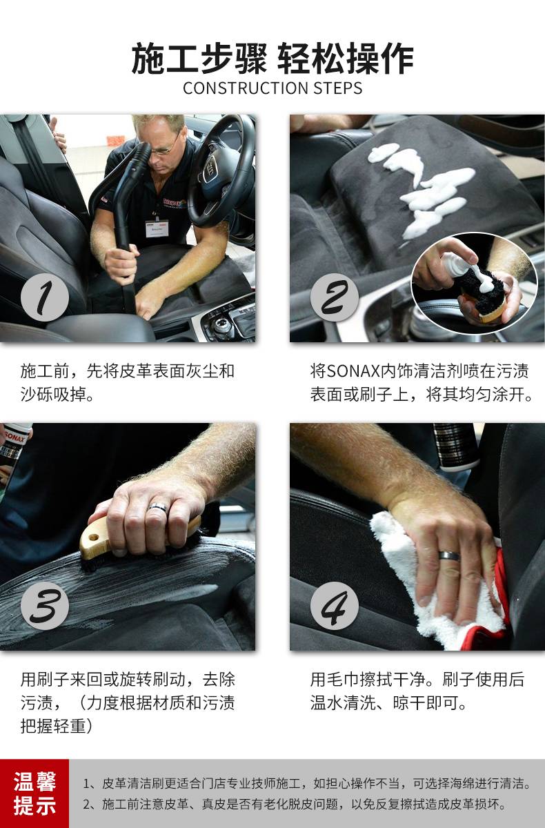 sonax索纳克斯皮革清洁刷光面皮革刷真皮座椅刷汽车内饰清洗工具