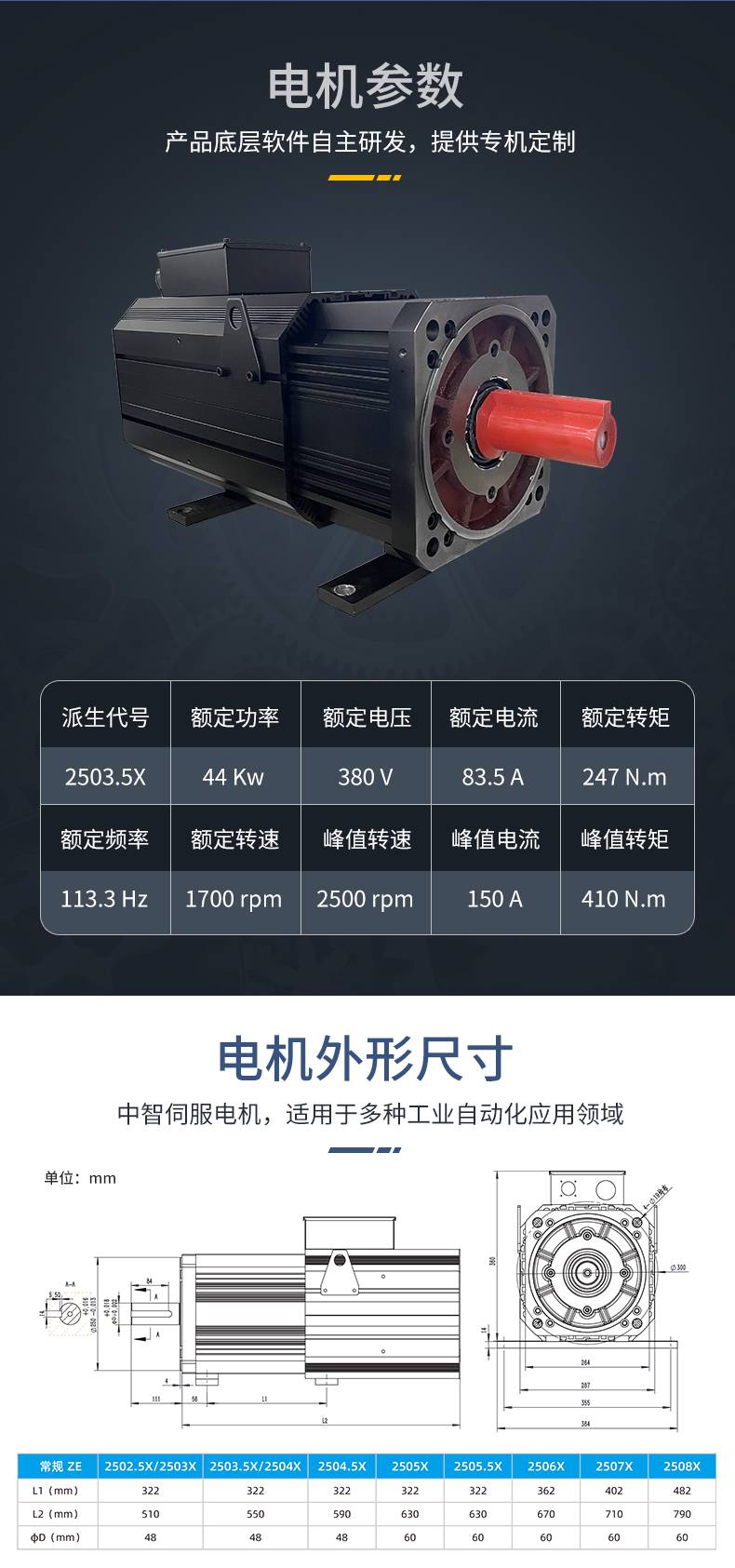 高低温伺服电机 44kw 电源适配供应 一级能效 中智电气
