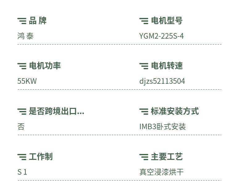 鸿泰YGM2低压紧凑型电机YGM2-225S-4 37KW全封闭无需励磁电源
