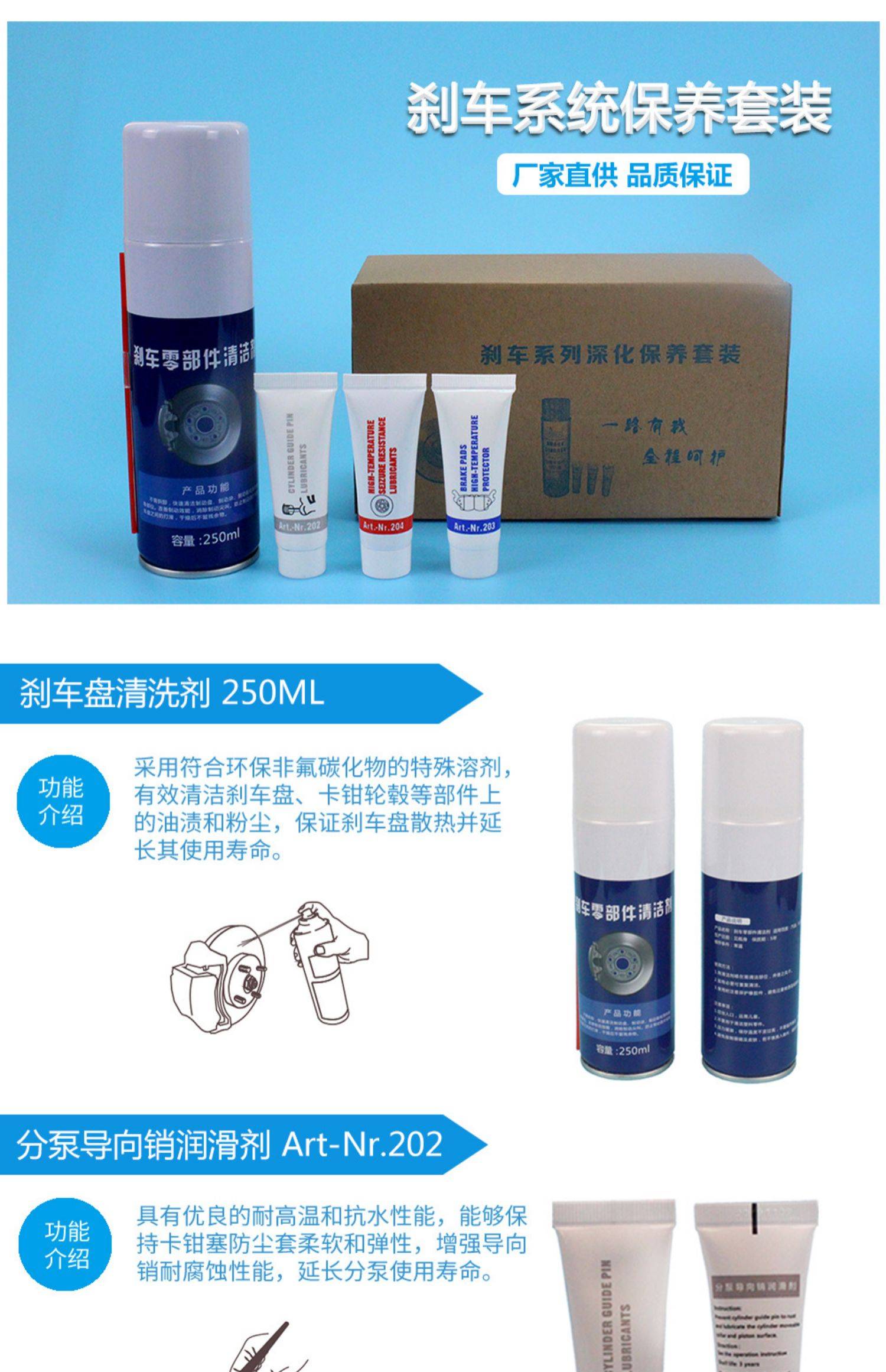 刹车系统保养套装分泵导向销刹车片轮毂轴头防锈卡死润滑脂三支套