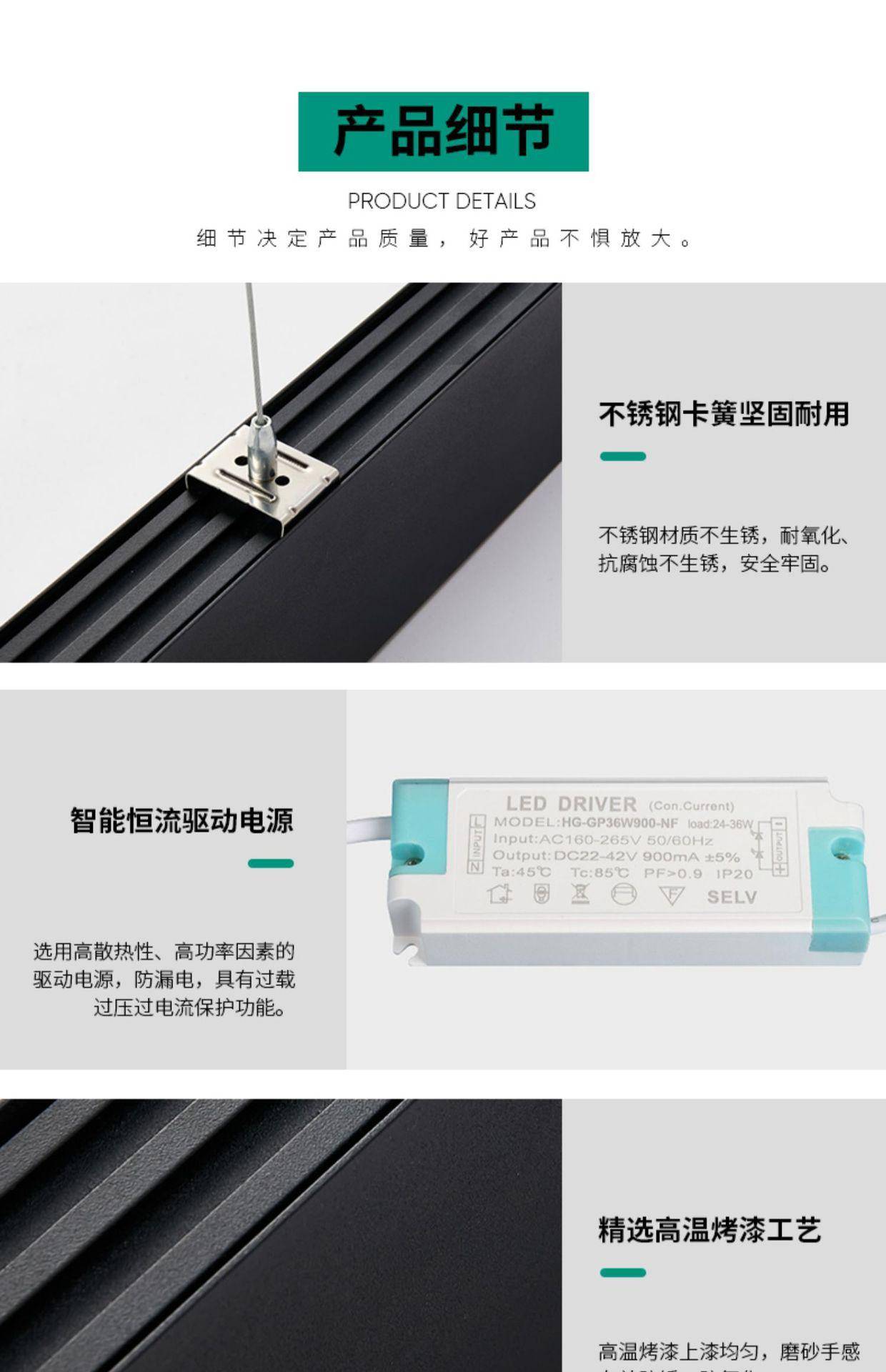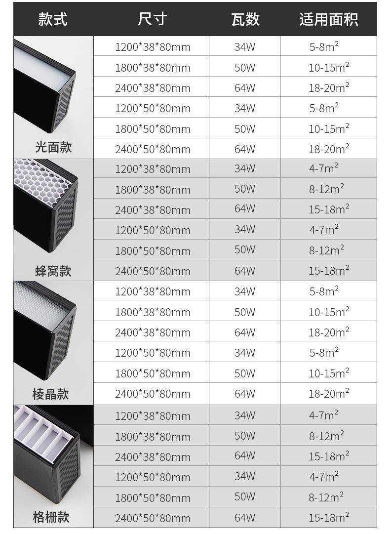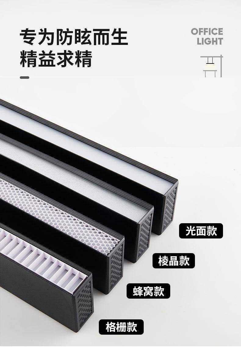 新款蜂窝格栅防眩长条灯办公灯可拼接无缝灯商店线性照明简约吊灯