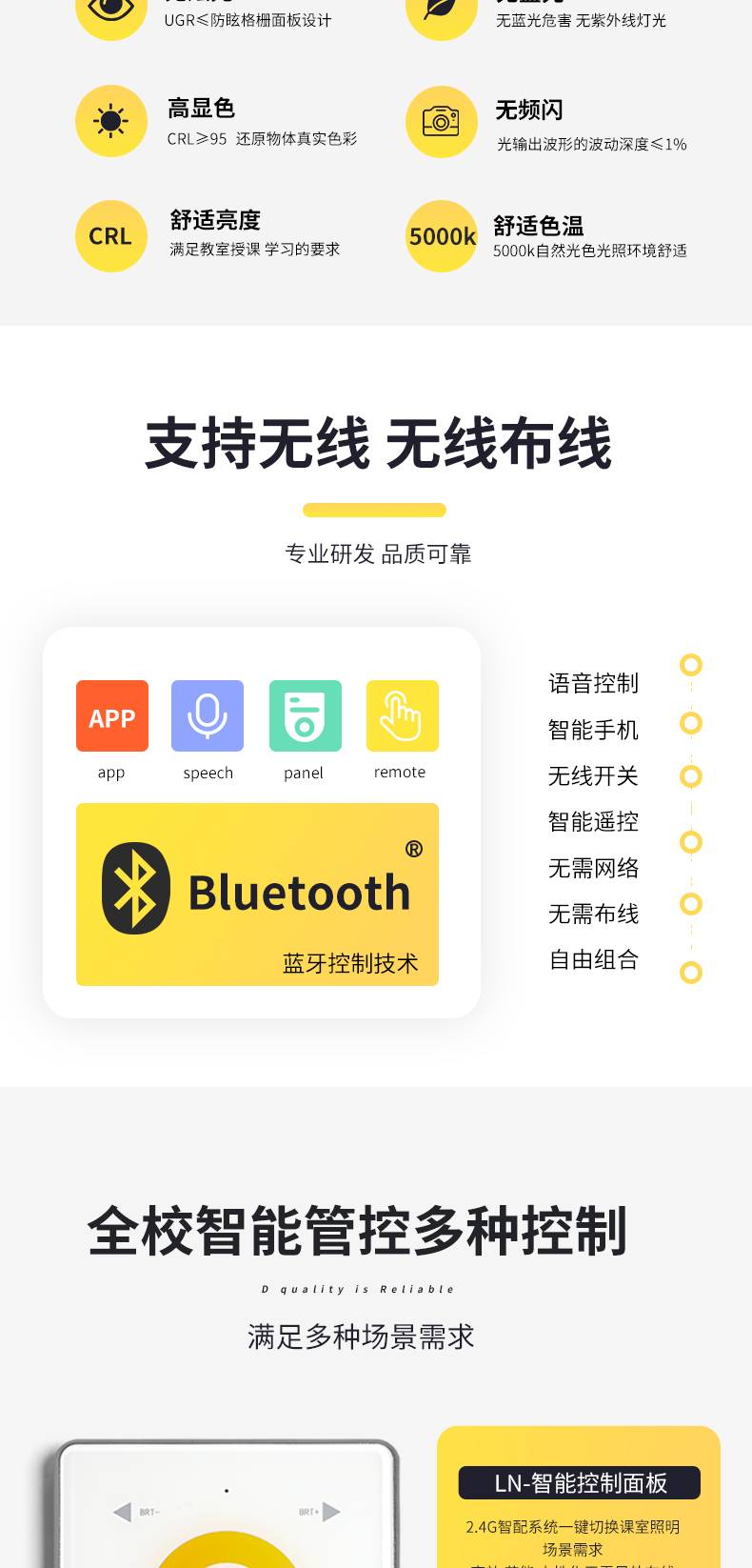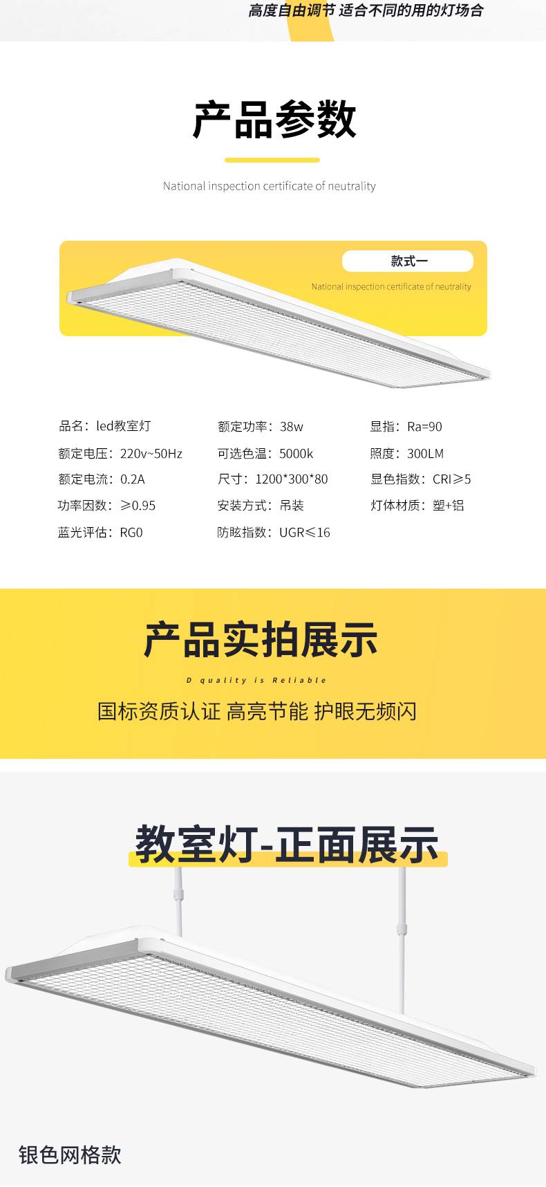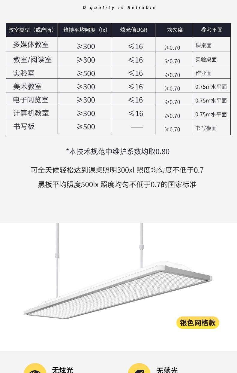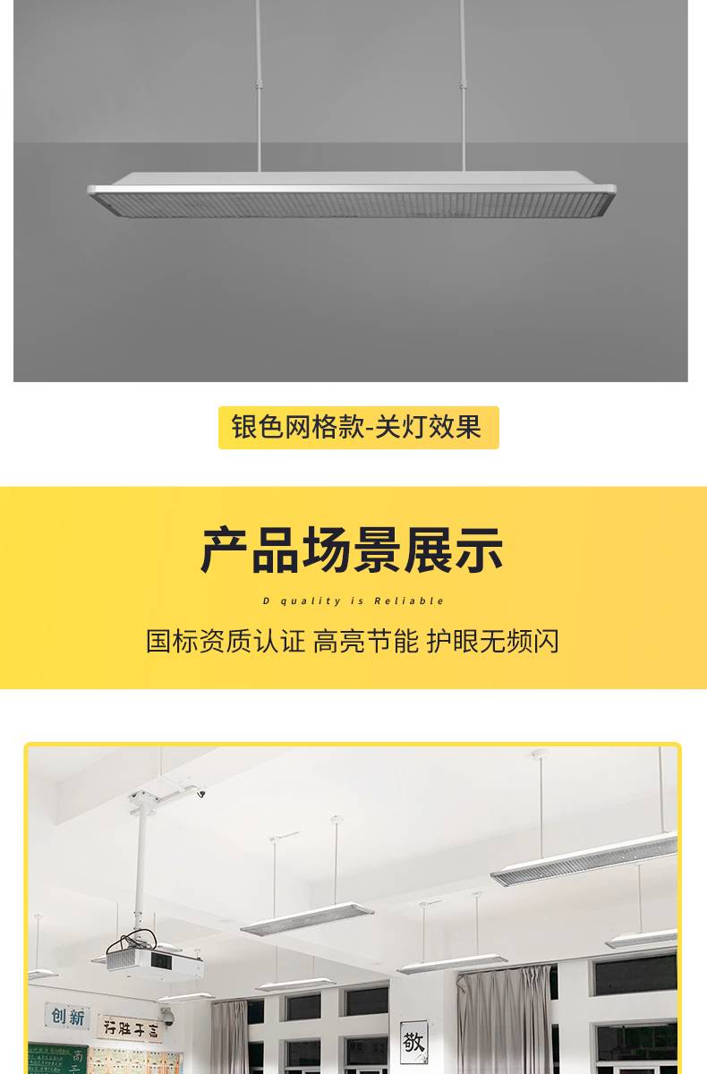 光浦睿多功能护眼灯 教室智慧照明镀铬格栅防眩光护目吊灯