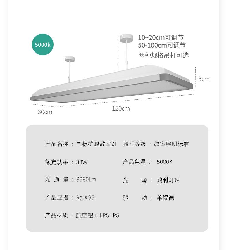 防眩光黑板灯5000k护眼灯 led教室灯专用吊灯质保五年超麦照明