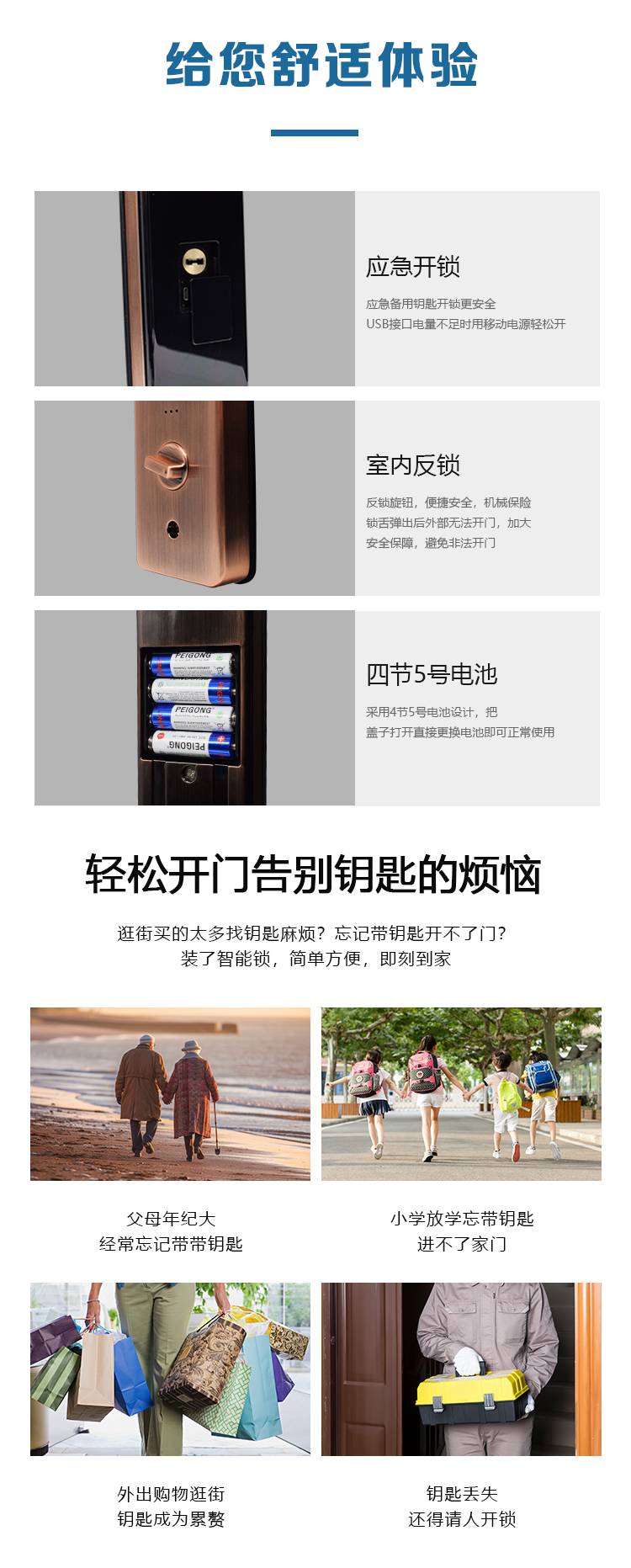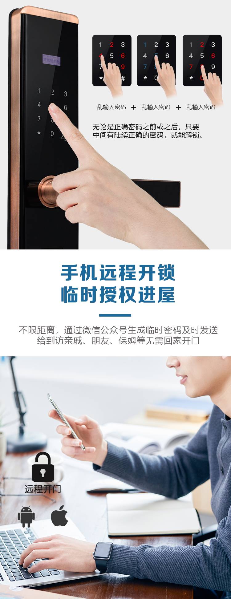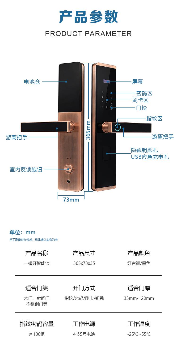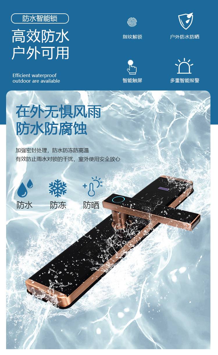 慧聪防水防冻智能锁户外防盗门密码锁别墅庭院门室外防雨指纹锁