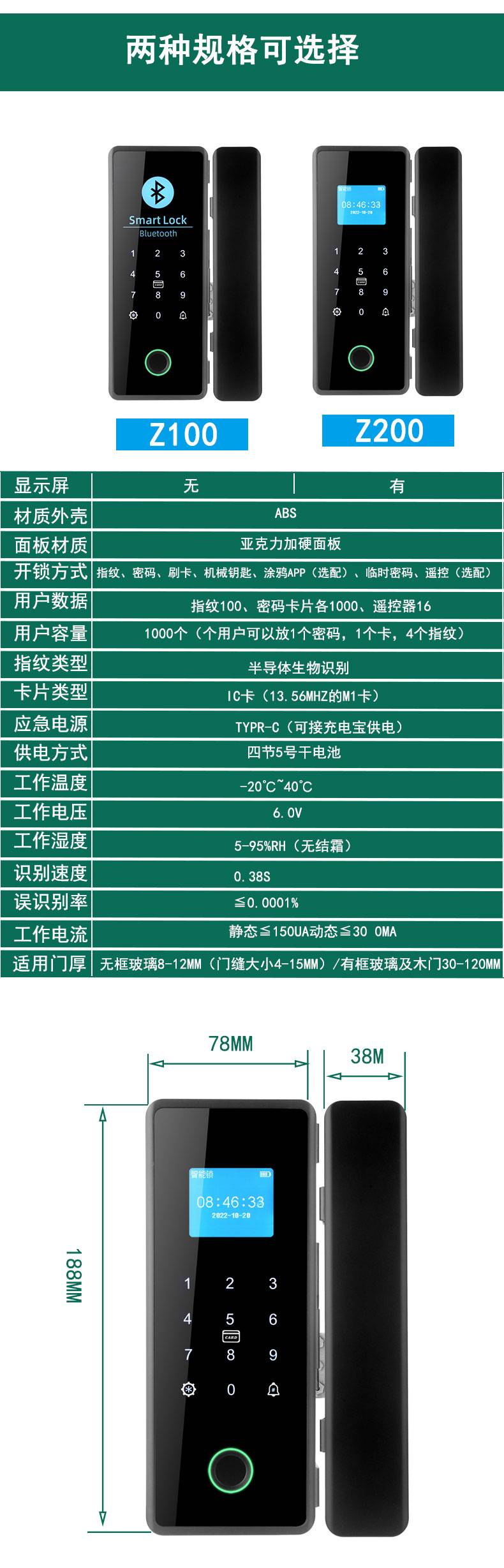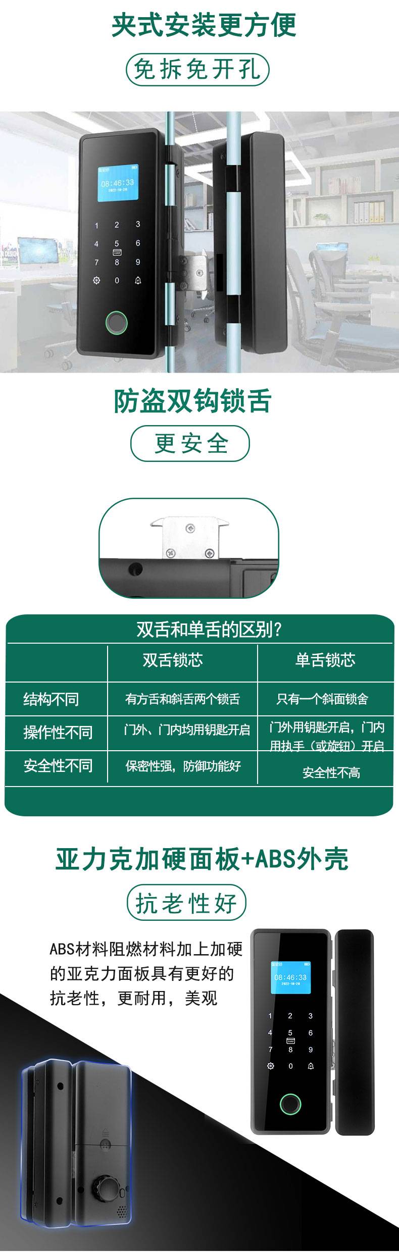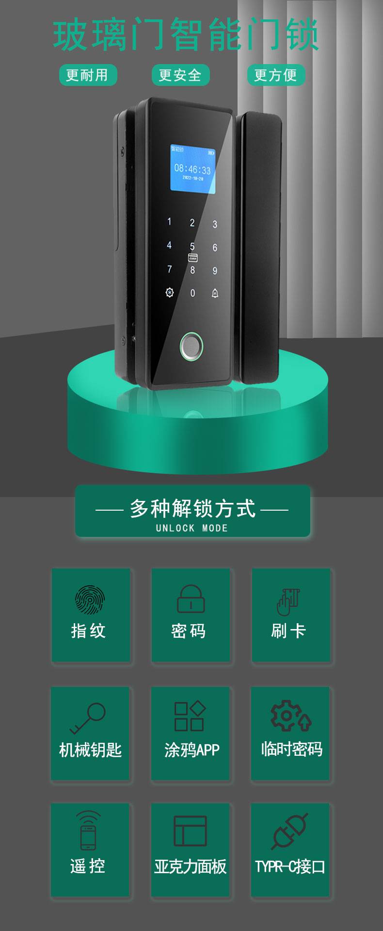 索威尔玻璃门锁指纹锁大屏免开孔遥控手机解锁智能锁办公室密码锁