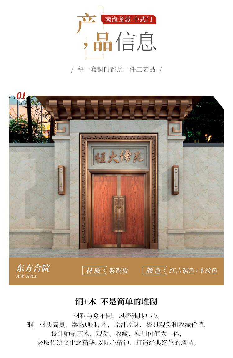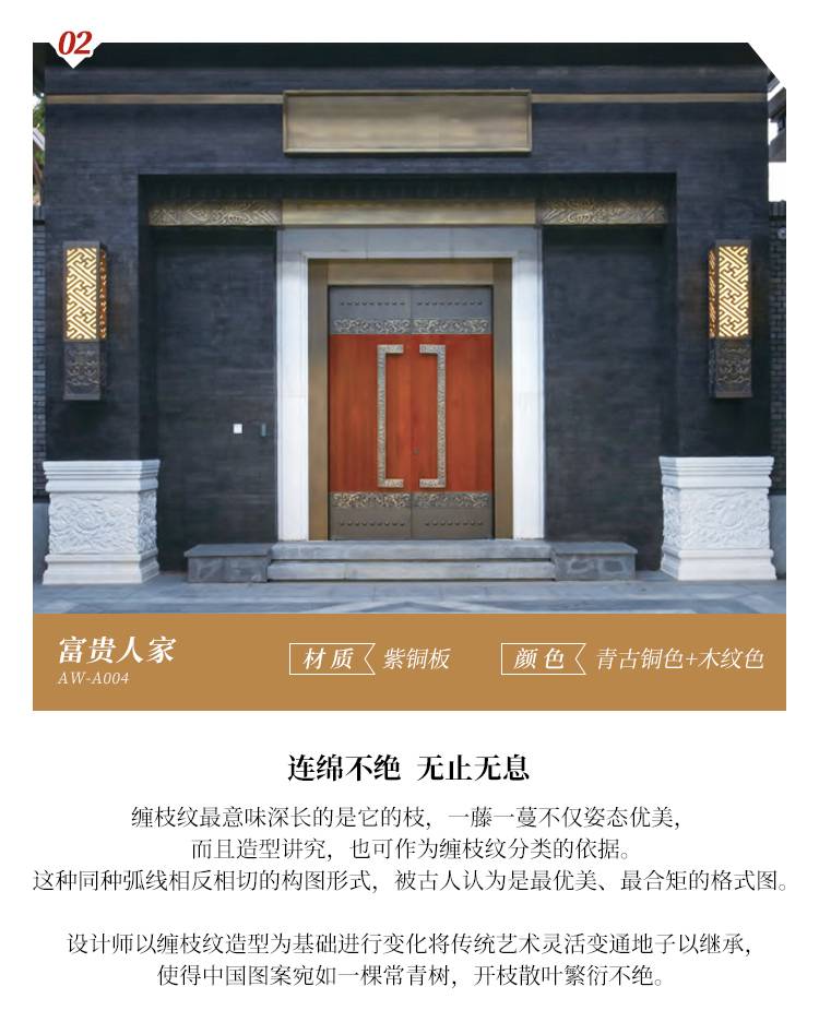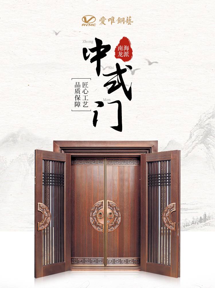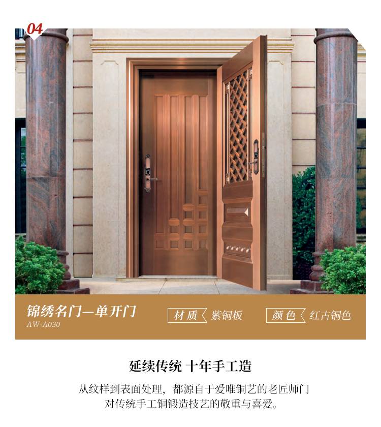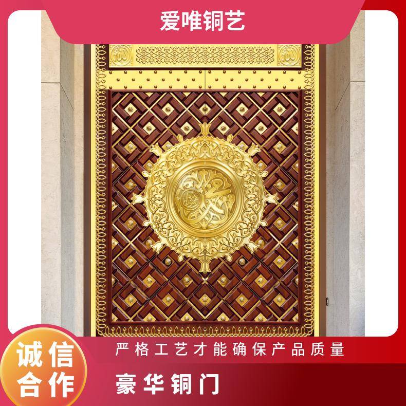 豪华铜门 定制 拼色风格 家居用门 指纹锁 爱唯铜艺对开门