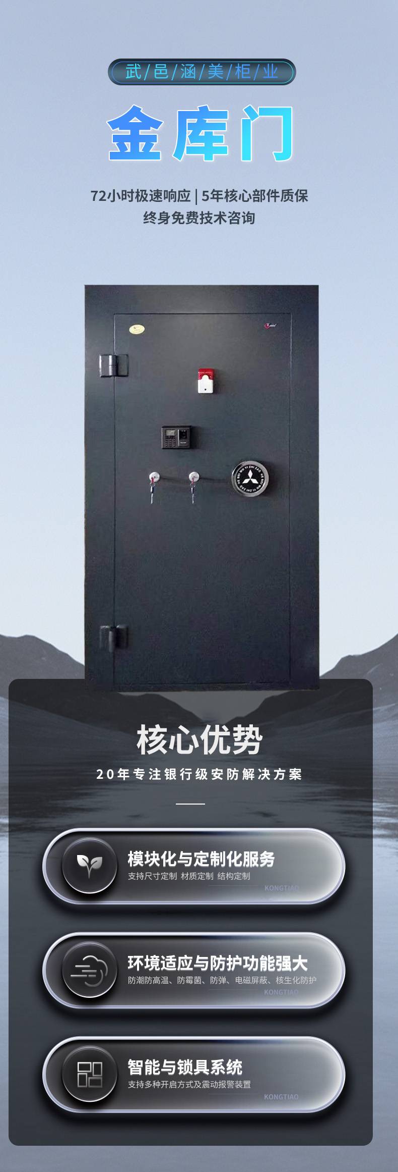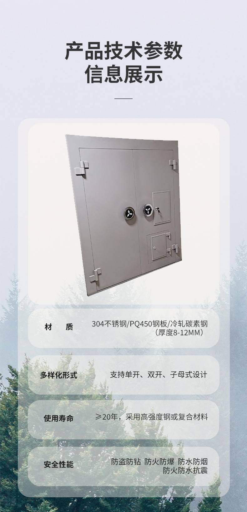 多重防护防盗门 博物馆金库门 高安全指纹锁定制 涵美柜业