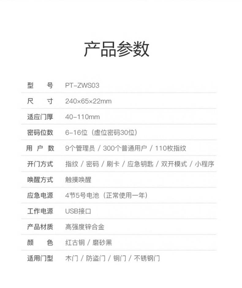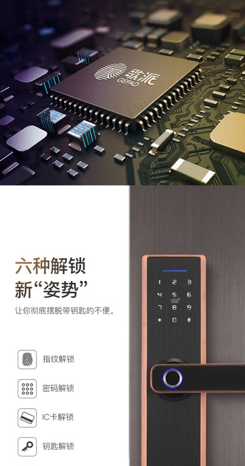 歌派PT-ZWS03指纹锁 智能锁指纹密码锁 领导办公室门锁