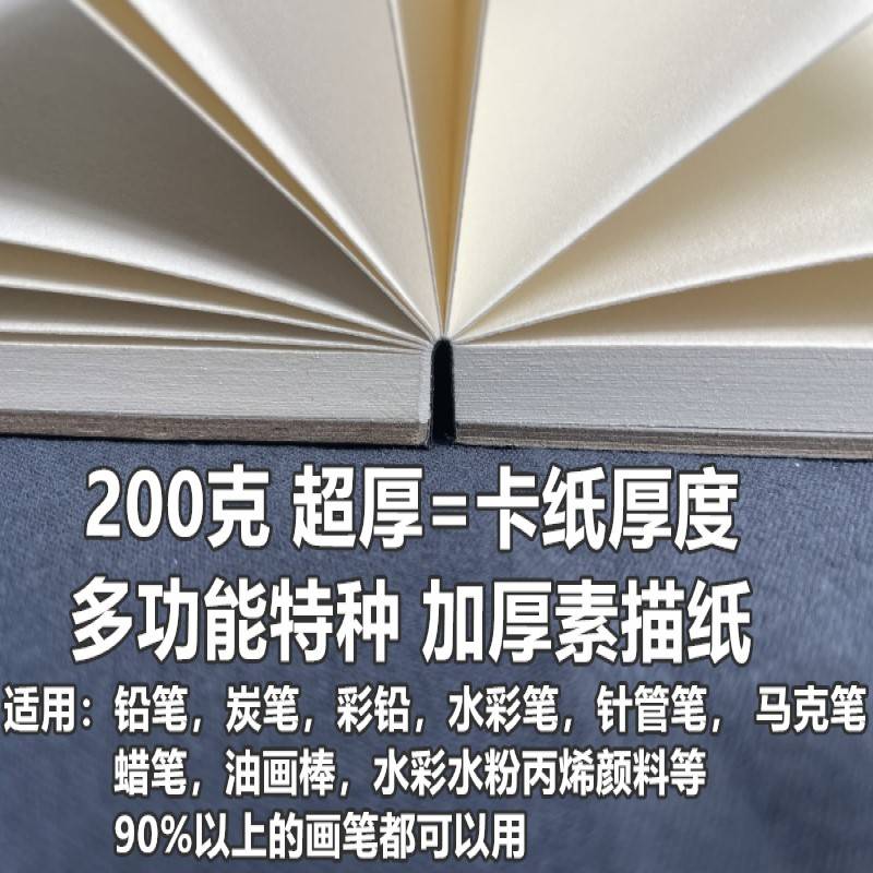 硬面180度平摊素描本超厚空白细纹素描纸彩铅马克笔水彩水粉速写
