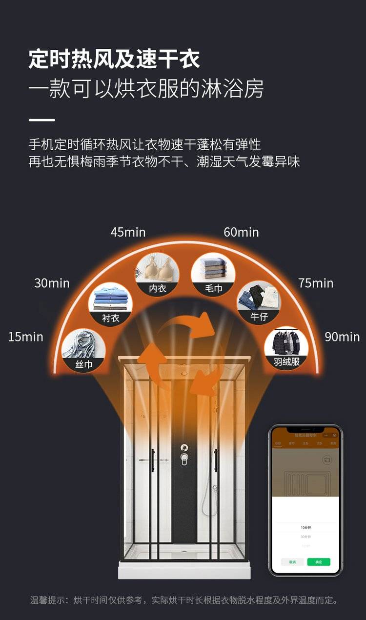 淋浴房整体浴室一体式家用底座沐浴房成品玻璃带暖风长方形洗澡间