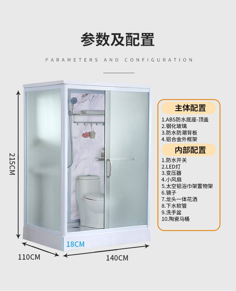 工厂定制整体淋浴房家用卫生间玻璃门方形一体沐浴房隔断现货