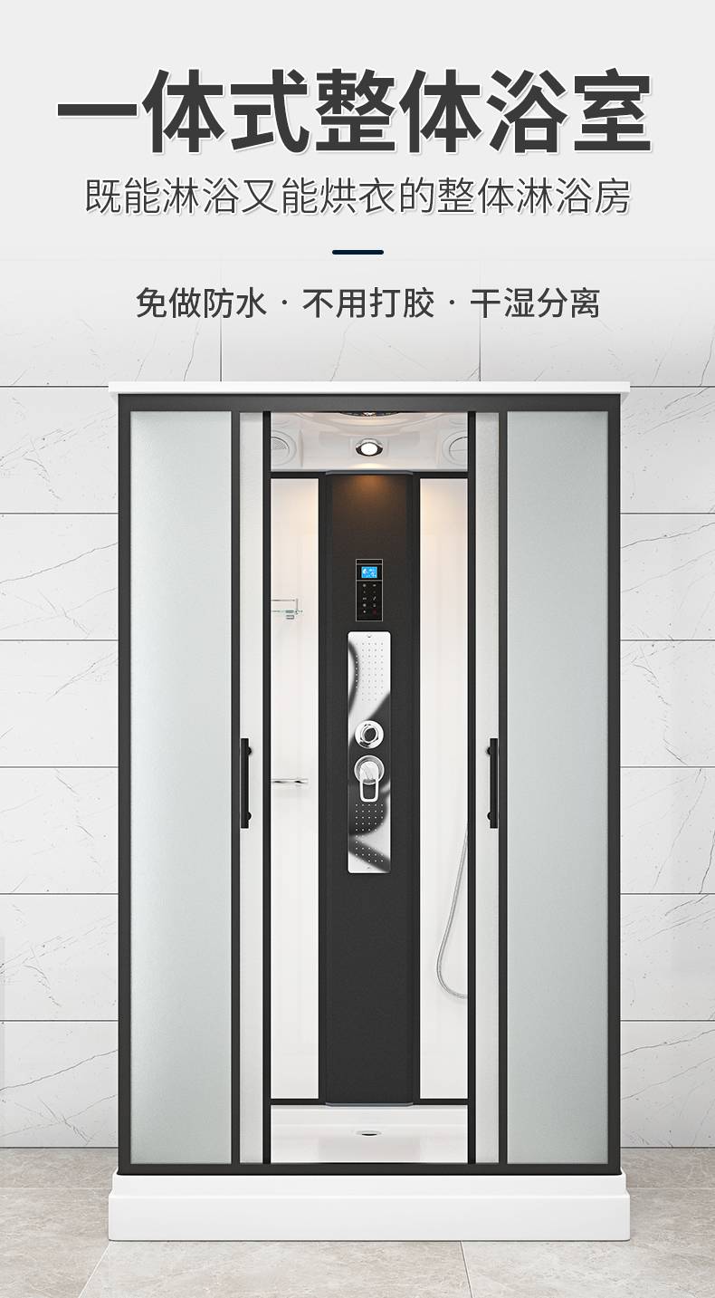整体淋浴房一体式家用农村成品浴室浴屏带底座长方形洗澡间沐浴房