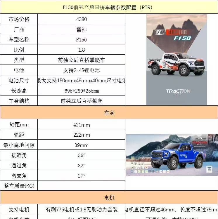 KM雷神新款 1/8仿真福特猛禽F150皮卡车RTR遥控电动攀爬车越野车