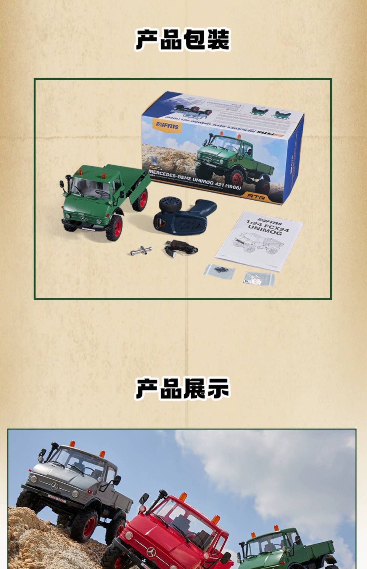 FMS新款 1/24乌尼莫克FCX系列 越野四驱RC攀爬车遥控电动仿真车模