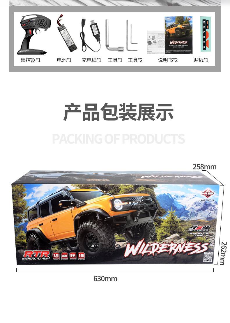 煌博HB 1/10遥控电动仿真烈马防水四驱高低速攀爬越野车