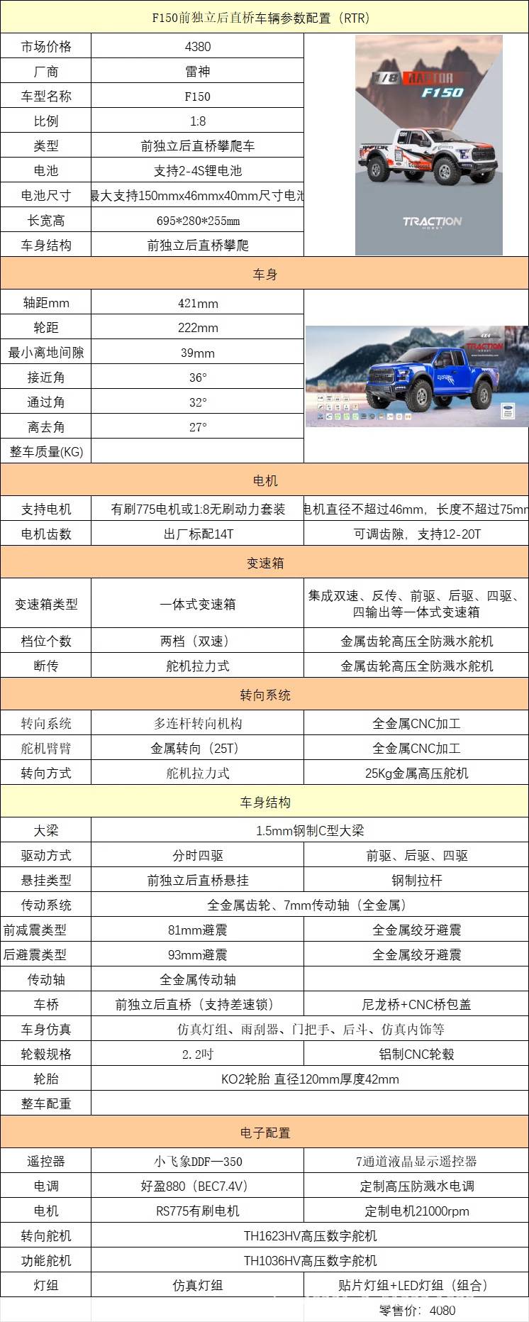 KM雷神新款1/8仿真福特猛禽F150皮卡车RTR遥控RC电动攀爬车差速锁