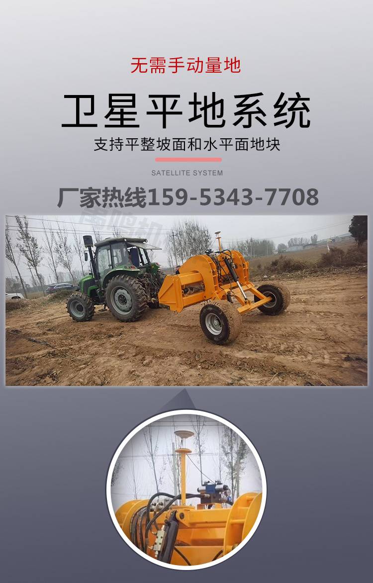 新款大型牵引式激光平地机 液压伸缩卫星整平机 荒地复耕新地刮平机