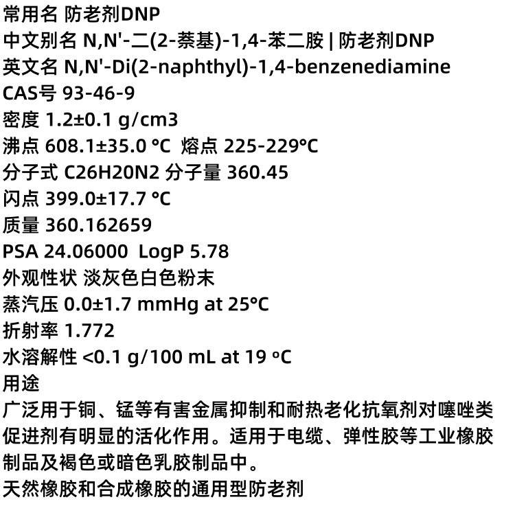 防老剂DNP 93-46-9 天然和合成橡胶制品 通用型 白色粉末