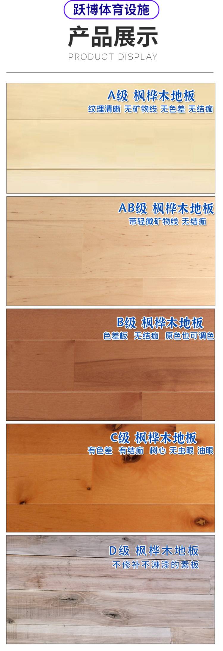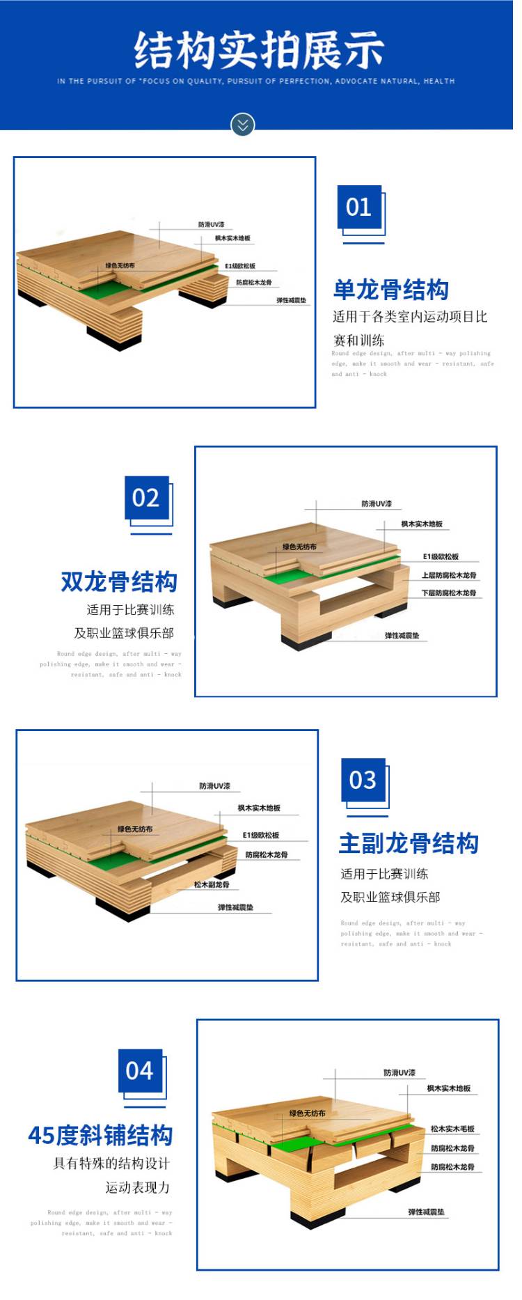 跃博 单双龙骨结构悬浮式舞台专用实木地板 工期短 易清洁