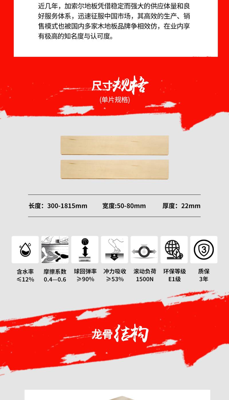 双龙骨场地板清洁保养 加索尔篮球场运动实木地板 天然原木